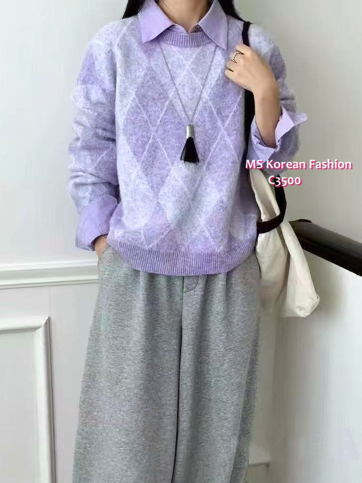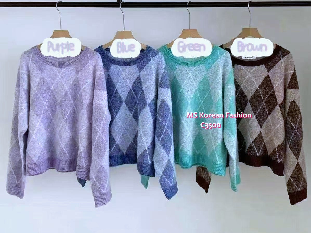 訂貨約7-10個工作天] 💰💞Happy Price: $199 靚色菱格紋混冷top Colour靚到叮一聲 單著或襯外套都一流 紫、藍、綠、啡 4色 尺寸 胸48">拉開58"/長22.5" 📫1件加$15包順豐站/自助櫃,2件包順豐(順豐站/自助櫃/工商/住宅) 📱查詢及Order可Inbox或Whatsapp 6317 3061