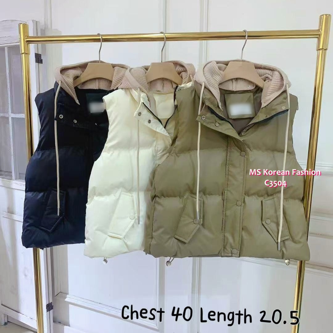 訂貨約7-10個工作天] 💰💞Happy Price: $229 夾棉背心外套✨ 兩邊有袋 衫腳可索繩 頂針織帽可以拆架👍 黑、米白、卡其 3色 尺寸 胸40"/長20.5" 📫1件加$15包順豐站/自助櫃,2件包順豐(順豐站/自助櫃/工商/住宅) 📱查詢及Order可Inbox或Whatsapp 6317 3061
