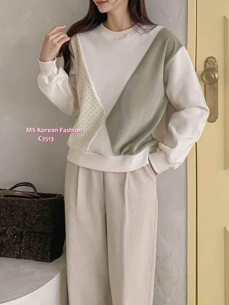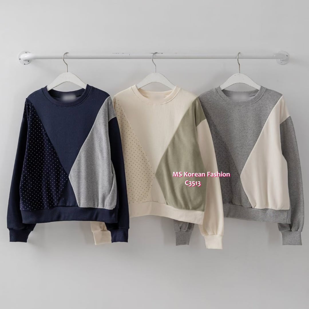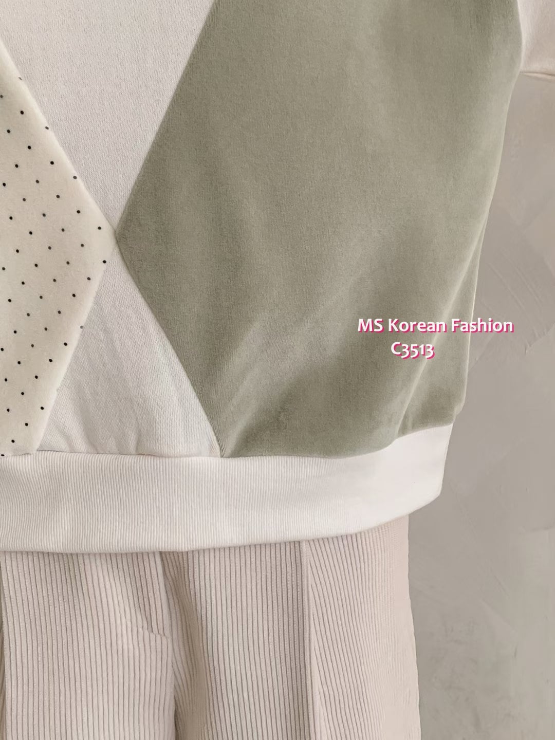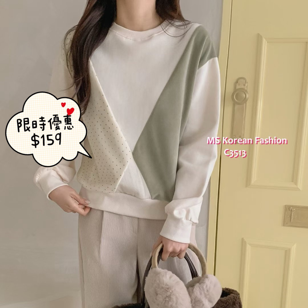[訂貨約7-10個工作天] 💰💨快閃𝟰𝟴小時優惠: $𝟭𝟱𝟵💨[原價$189] ⏰優惠𝟮𝟰/𝟭𝟮 𝟮𝗽𝗺結束 ⏰ 靚色拼布top😻 舒服棉料拼絲絨料 簡約小波點pattern💕 襯裙襯褲都好睇 寶藍、米、灰 3色 尺寸 胸49"/長23" 📫1件加$15包順豐站/自助櫃,2件包順豐 📱查詢及Order可Inbox或Whatsapp 6317 3061