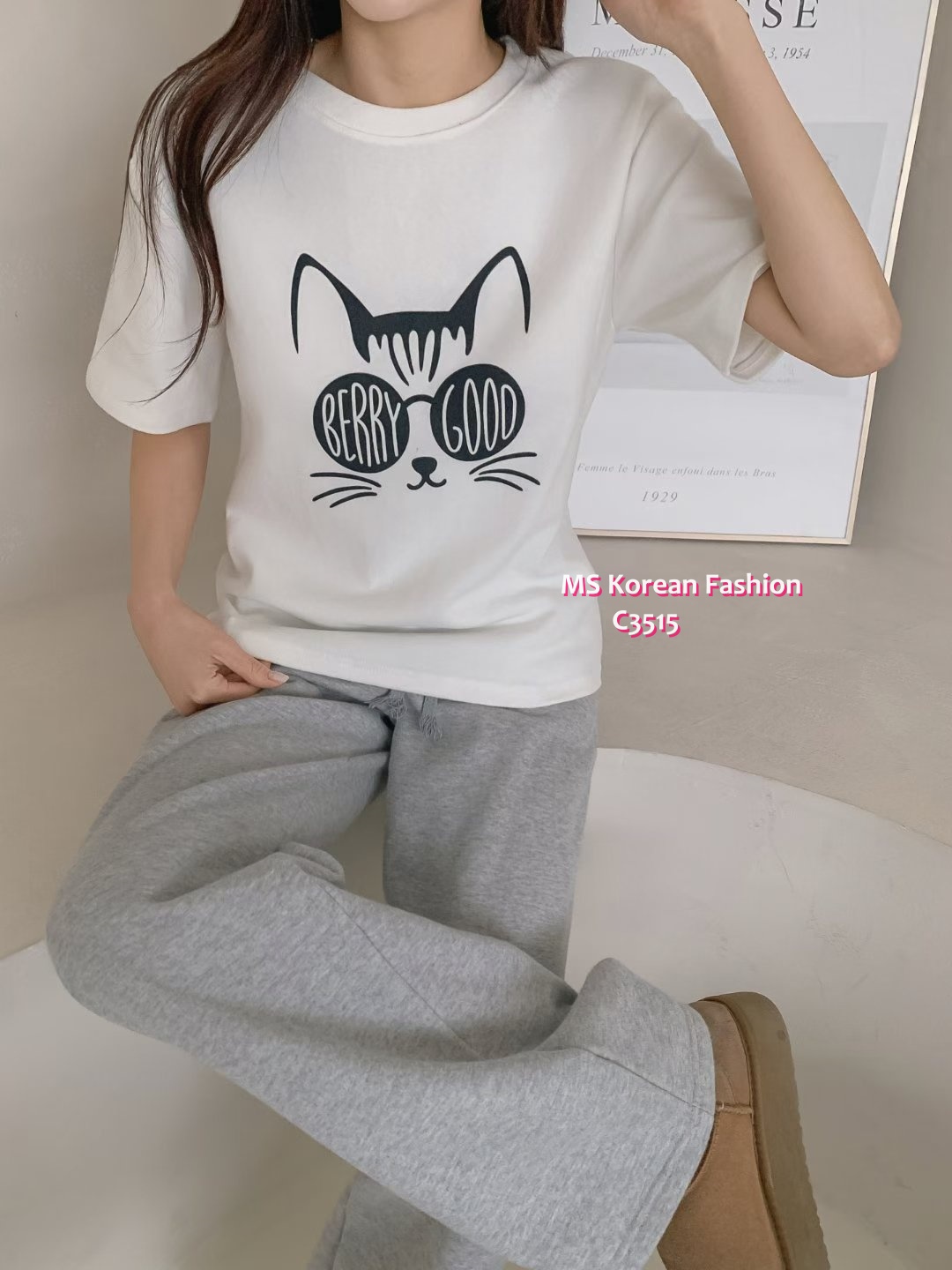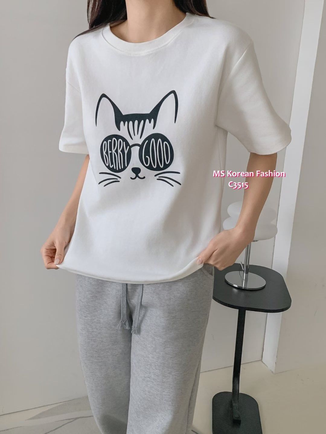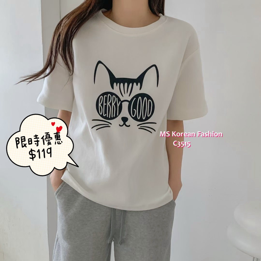 C3515 韓國🇰🇷可愛貓仔字母tee
