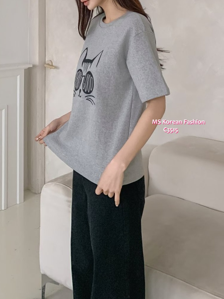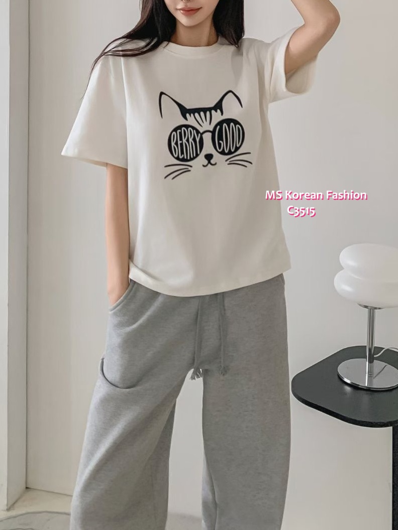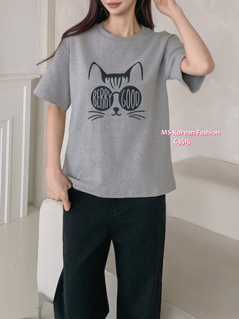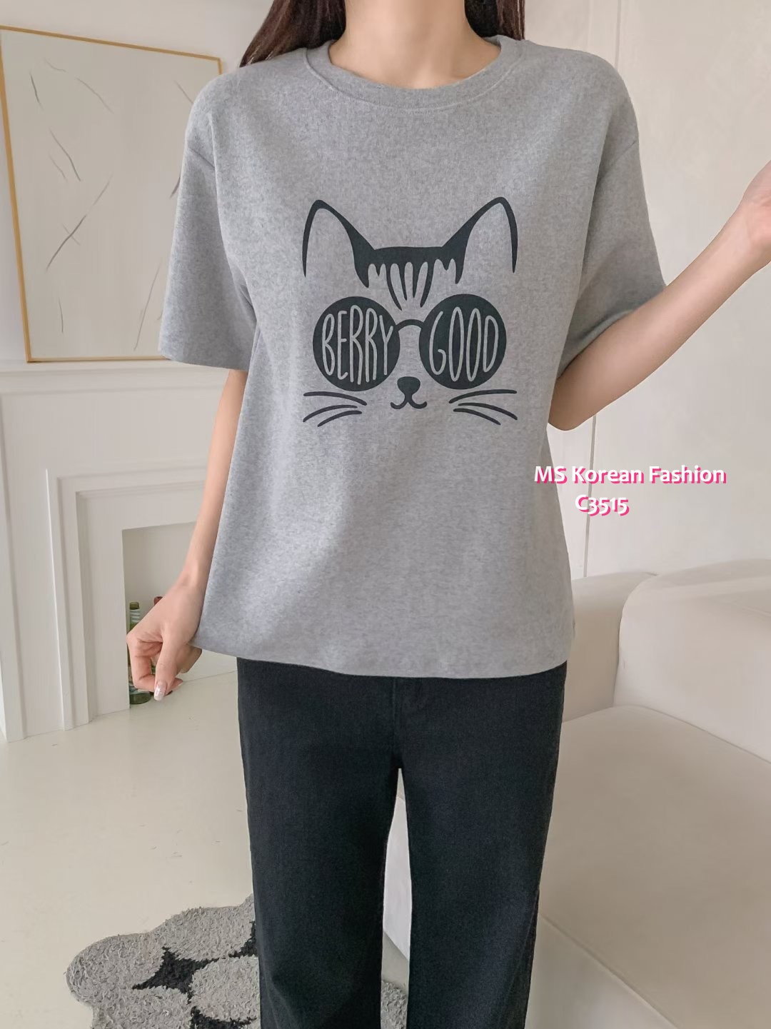 C3515 韓國🇰🇷可愛貓仔字母tee