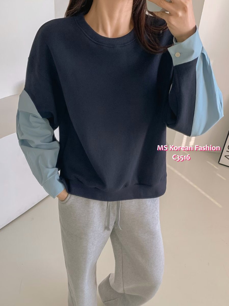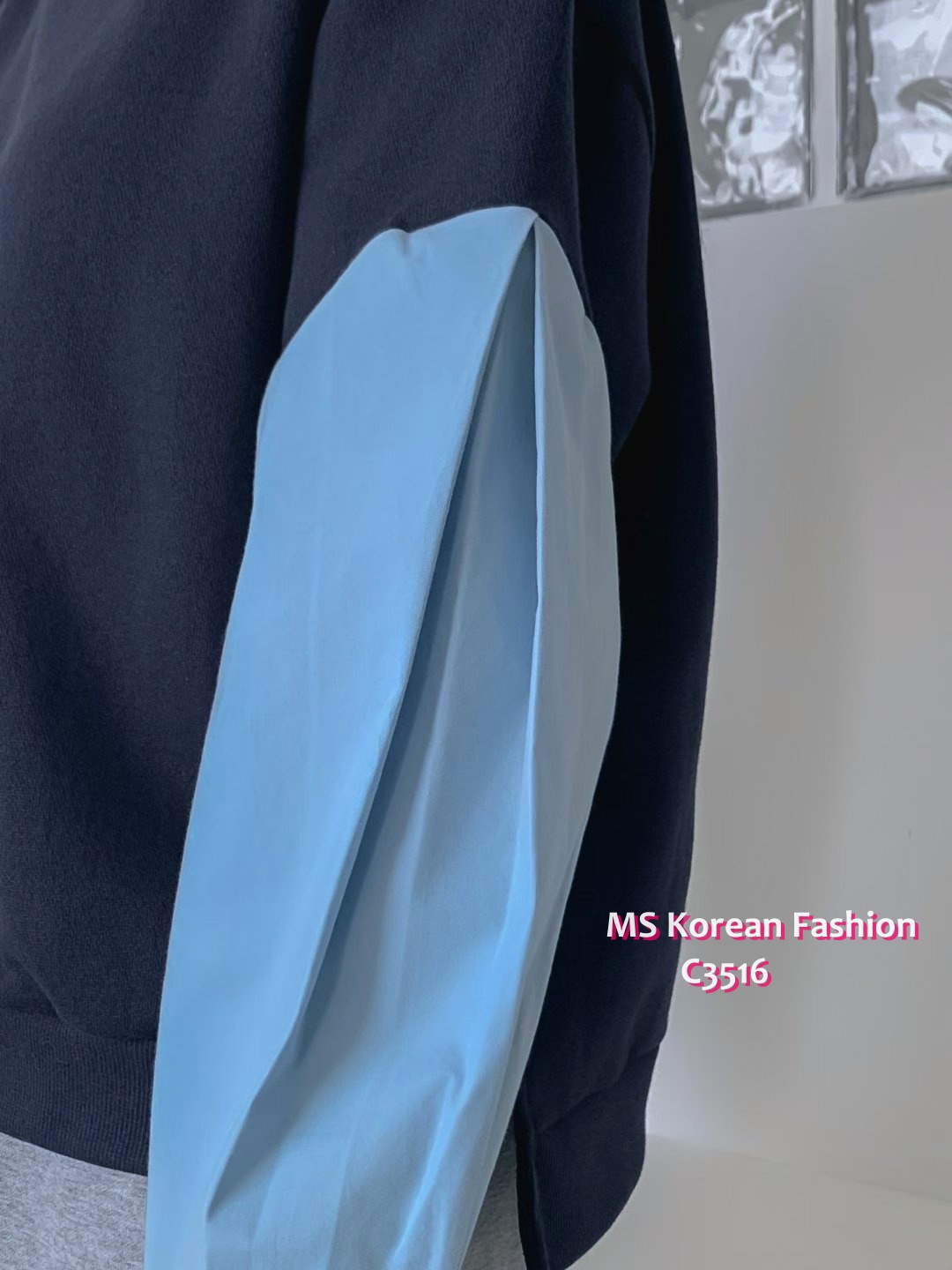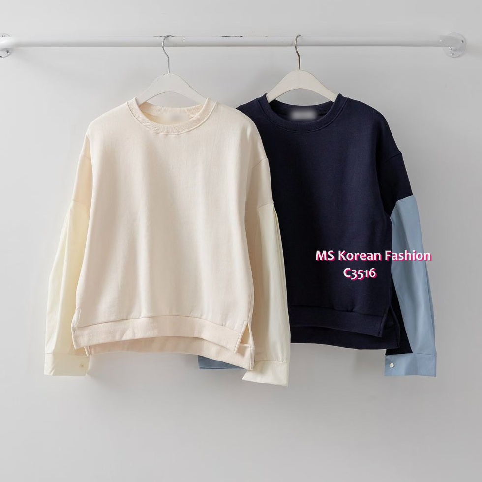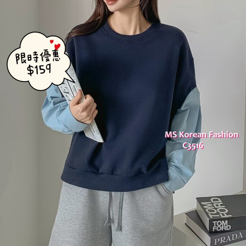[訂貨約7-10個工作天] 💰💨快閃𝟰𝟴小時優惠: $𝟭𝟱𝟵💨[原價$189] ⏰優惠𝟯𝟬/𝟭𝟮 𝟮𝗽𝗺結束 ⏰ 特色拼袖top✨ 兩邊袖做左皺摺位 衫腳小開叉設計 簡約stylish😎 加左絨毛底暖笠笠 米、寶藍 2色 尺寸 胸44"/長23" 📫1件加$15包順豐站/自助櫃,2件包順豐 📱查詢及Order可Inbox或Whatsapp 6317 3061
