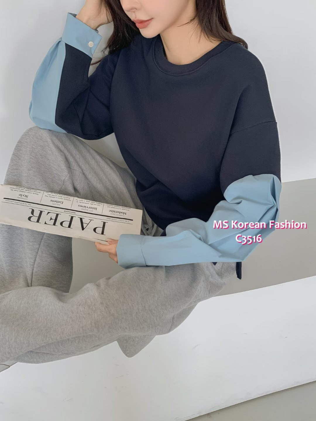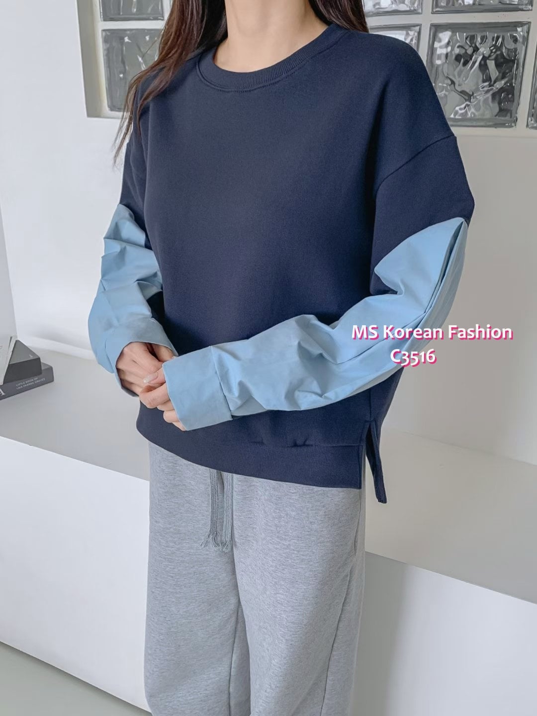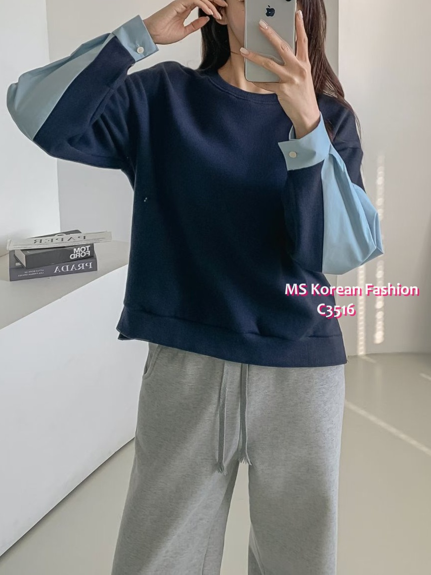 [訂貨約7-10個工作天] 💰💨快閃𝟰𝟴小時優惠: $𝟭𝟱𝟵💨[原價$189] ⏰優惠𝟯𝟬/𝟭𝟮 𝟮𝗽𝗺結束 ⏰ 特色拼袖top✨ 兩邊袖做左皺摺位 衫腳小開叉設計 簡約stylish😎 加左絨毛底暖笠笠 米、寶藍 2色 尺寸 胸44"/長23" 📫1件加$15包順豐站/自助櫃,2件包順豐 📱查詢及Order可Inbox或Whatsapp 6317 3061