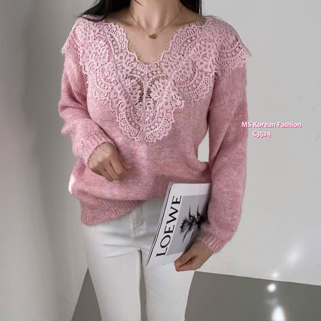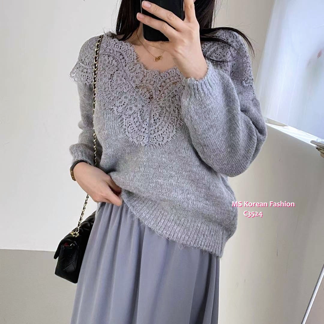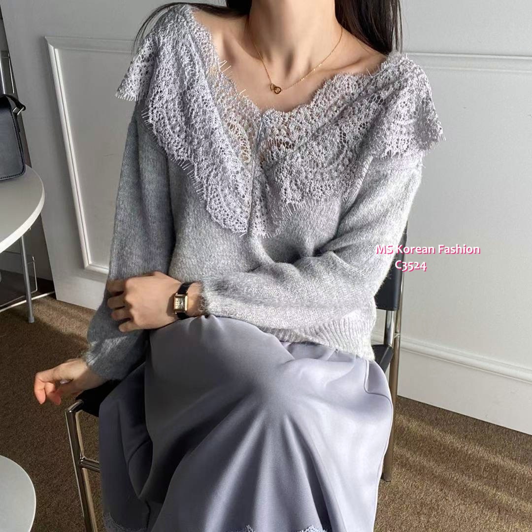 C3524 韓國🇰🇷靚靚拼lace冷衫