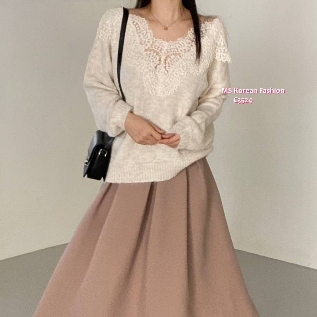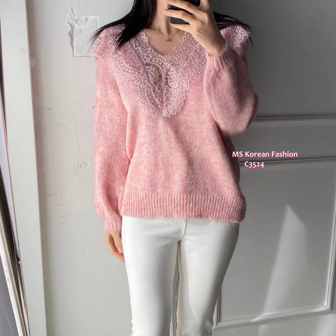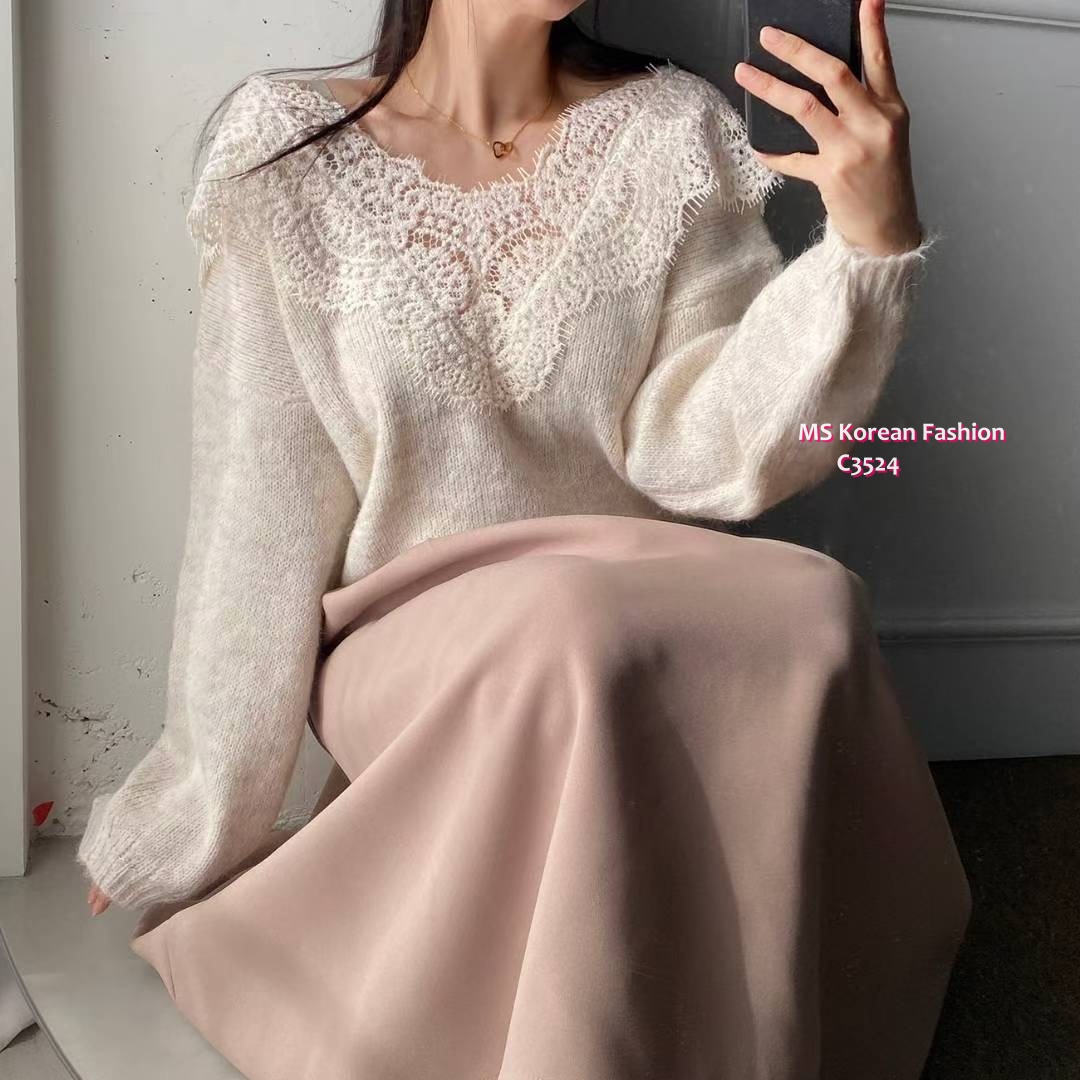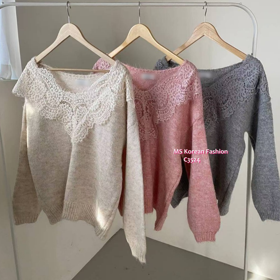 C3524 韓國🇰🇷靚靚拼lace冷衫