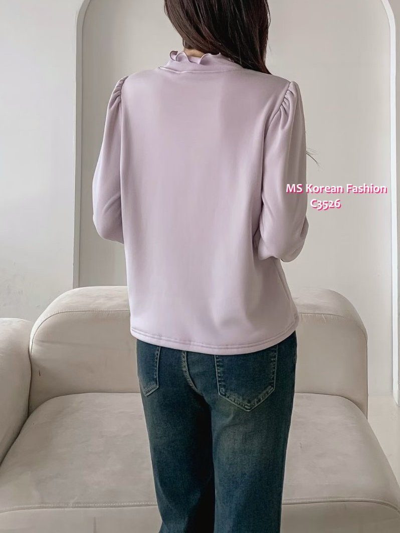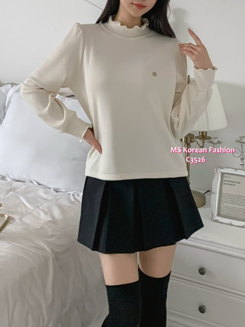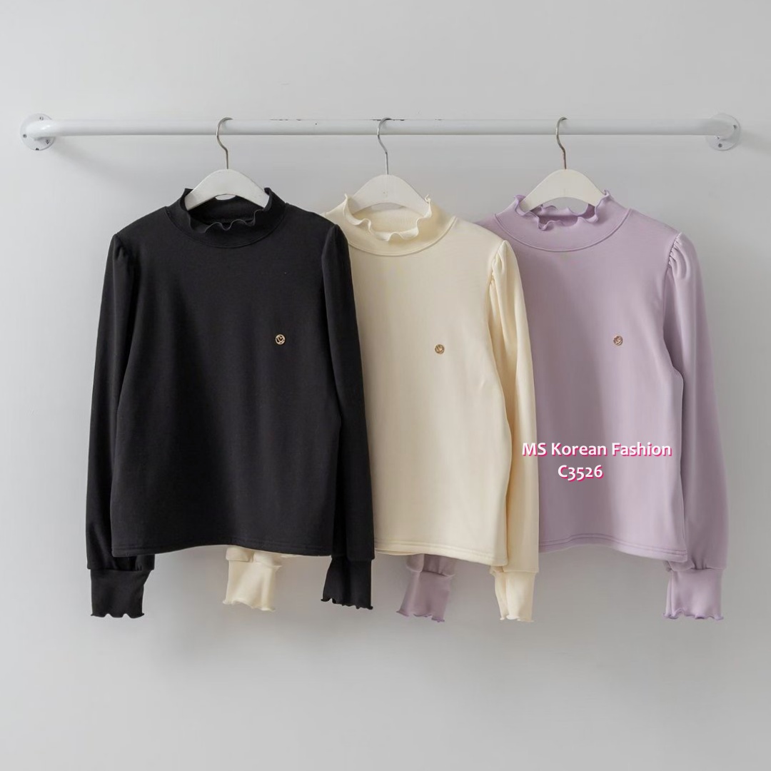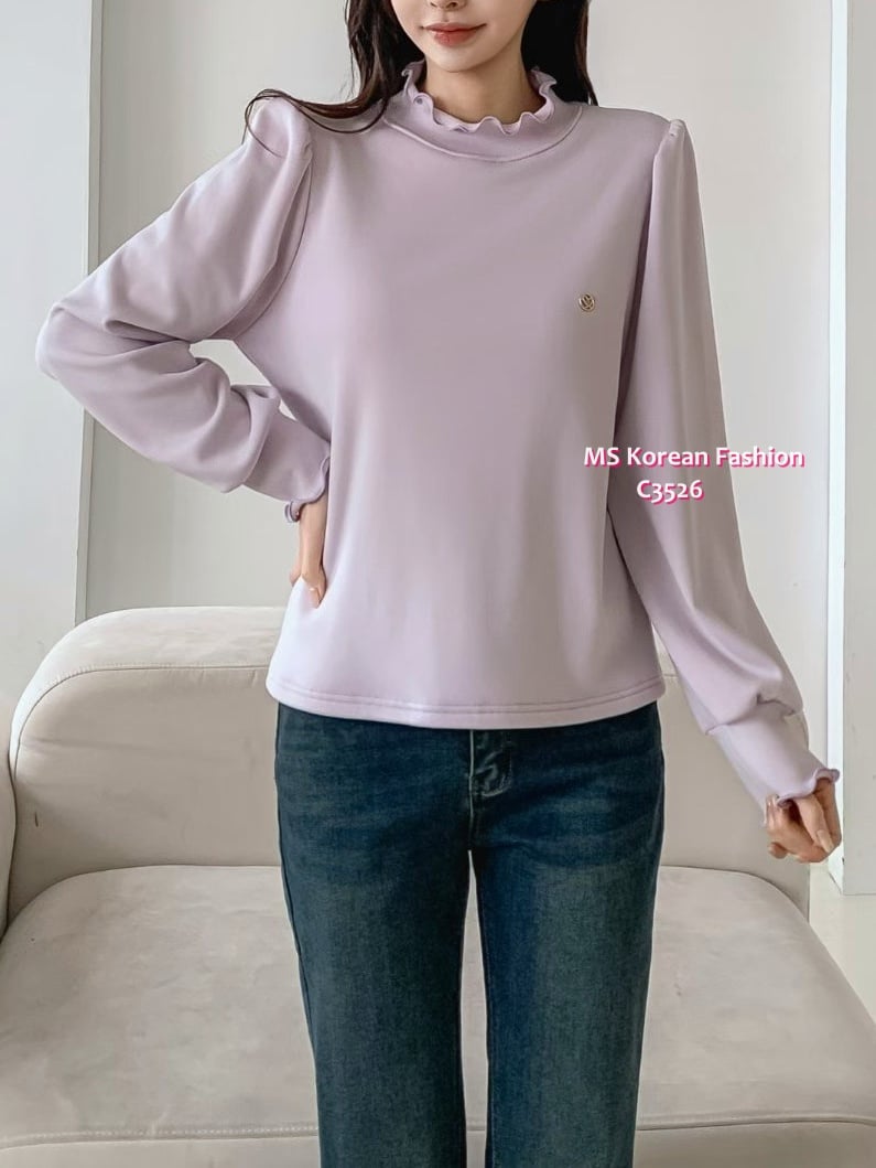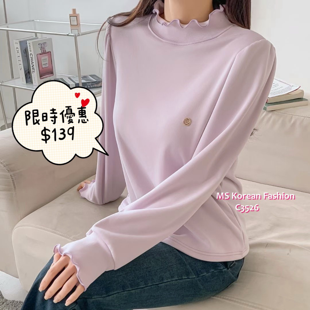 C3526 韓國🇰🇷淨色荷葉邊毛底top