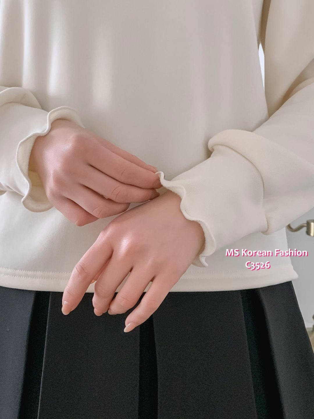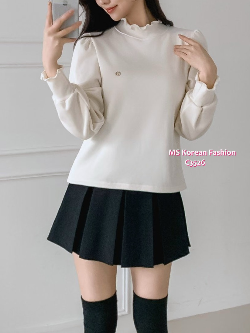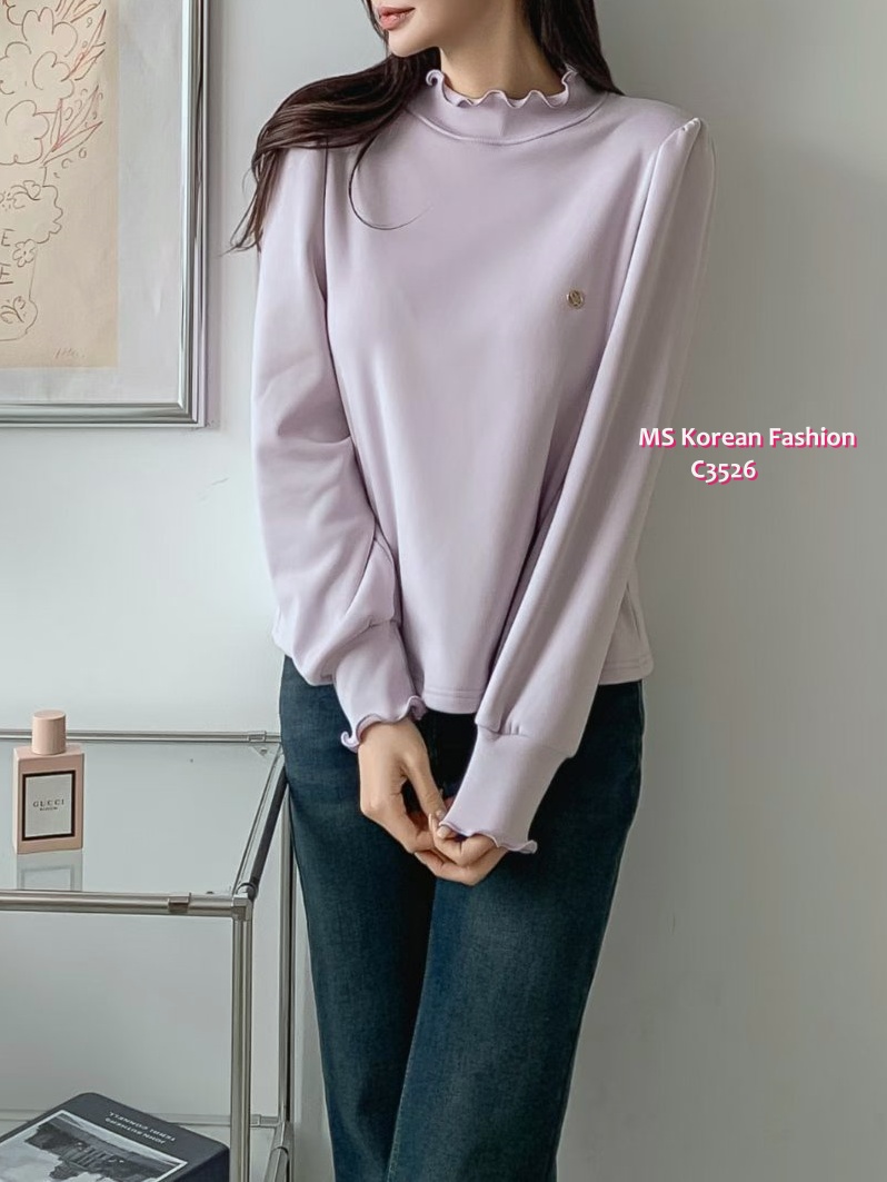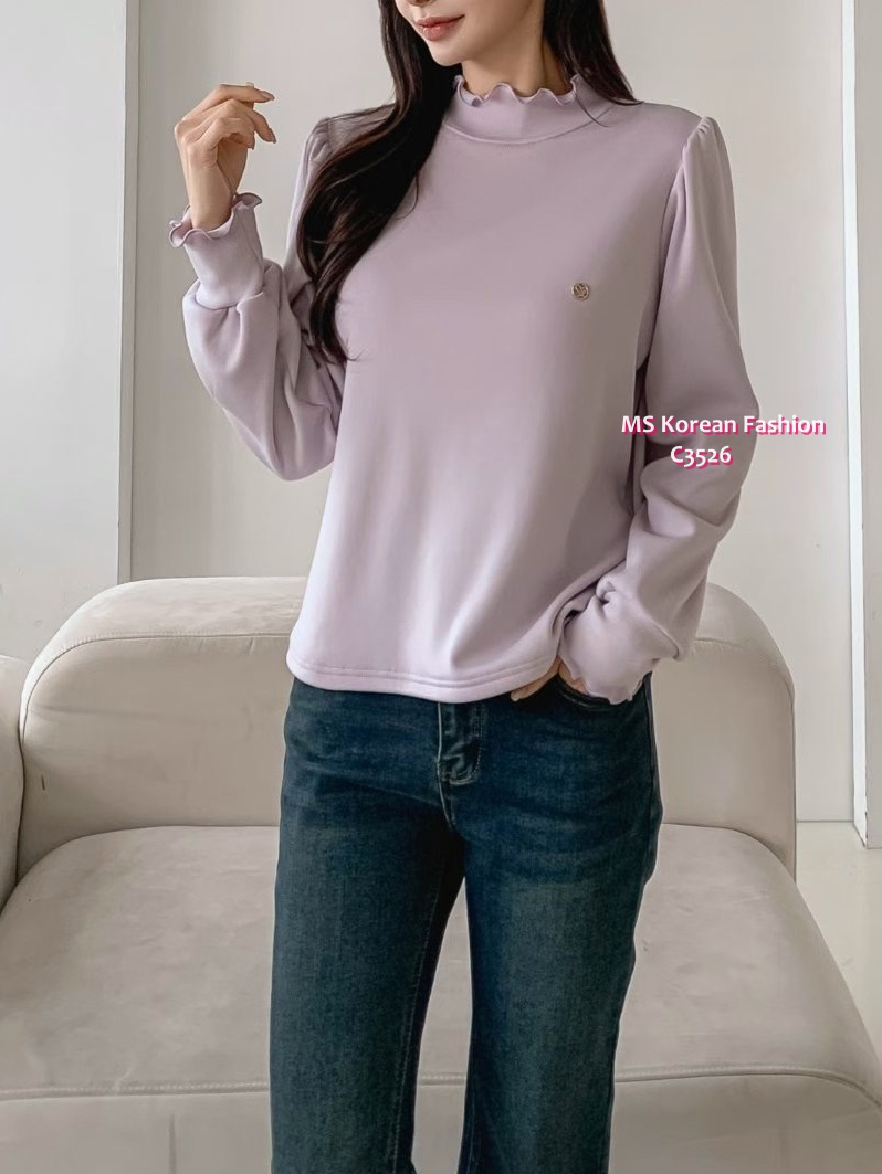 C3526 韓國🇰🇷淨色荷葉邊毛底top
