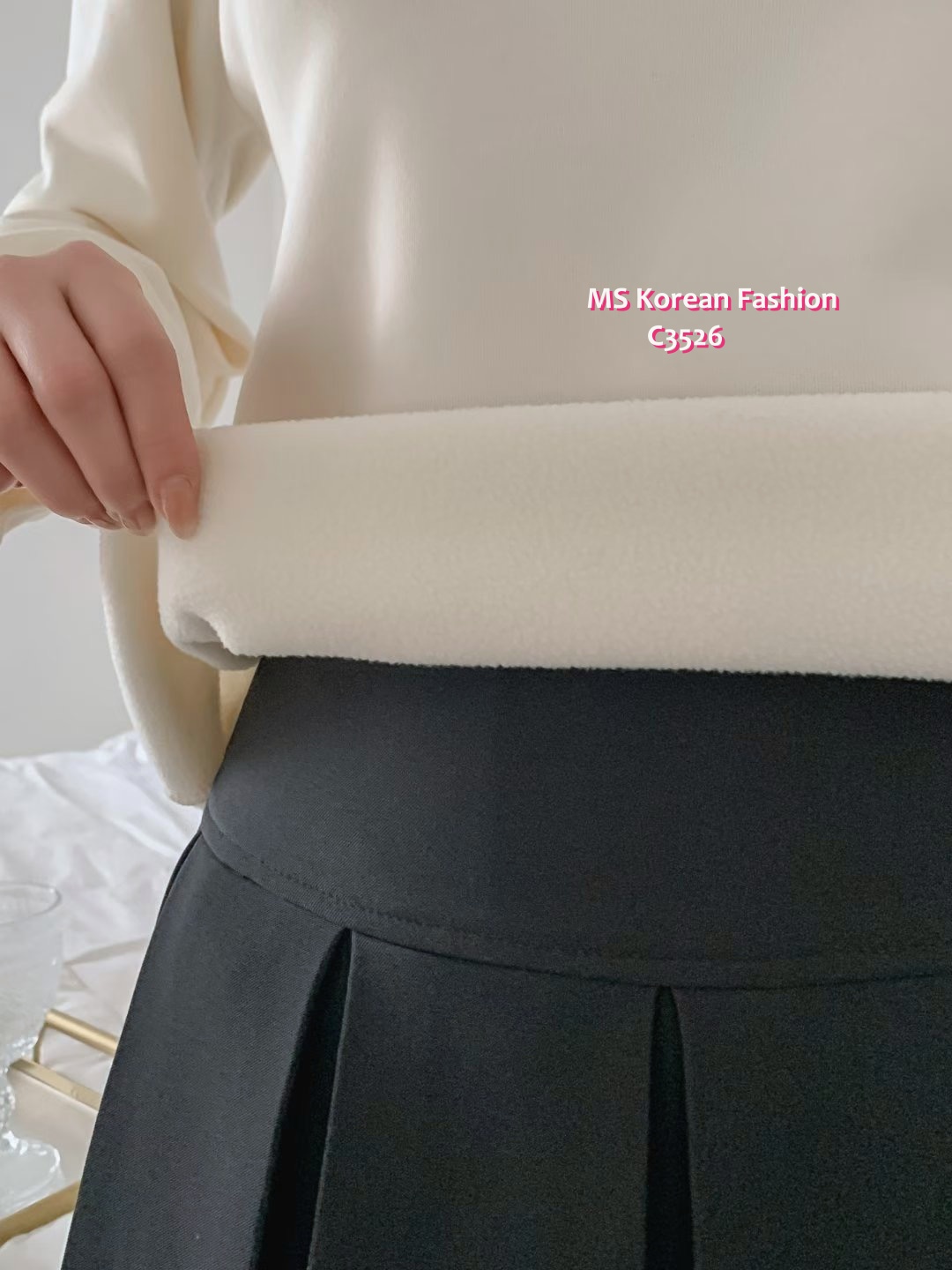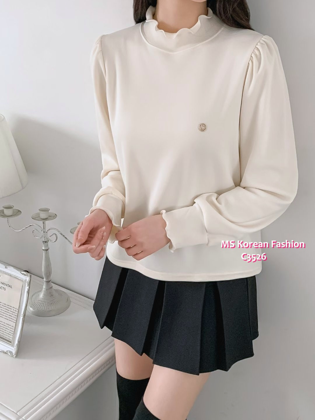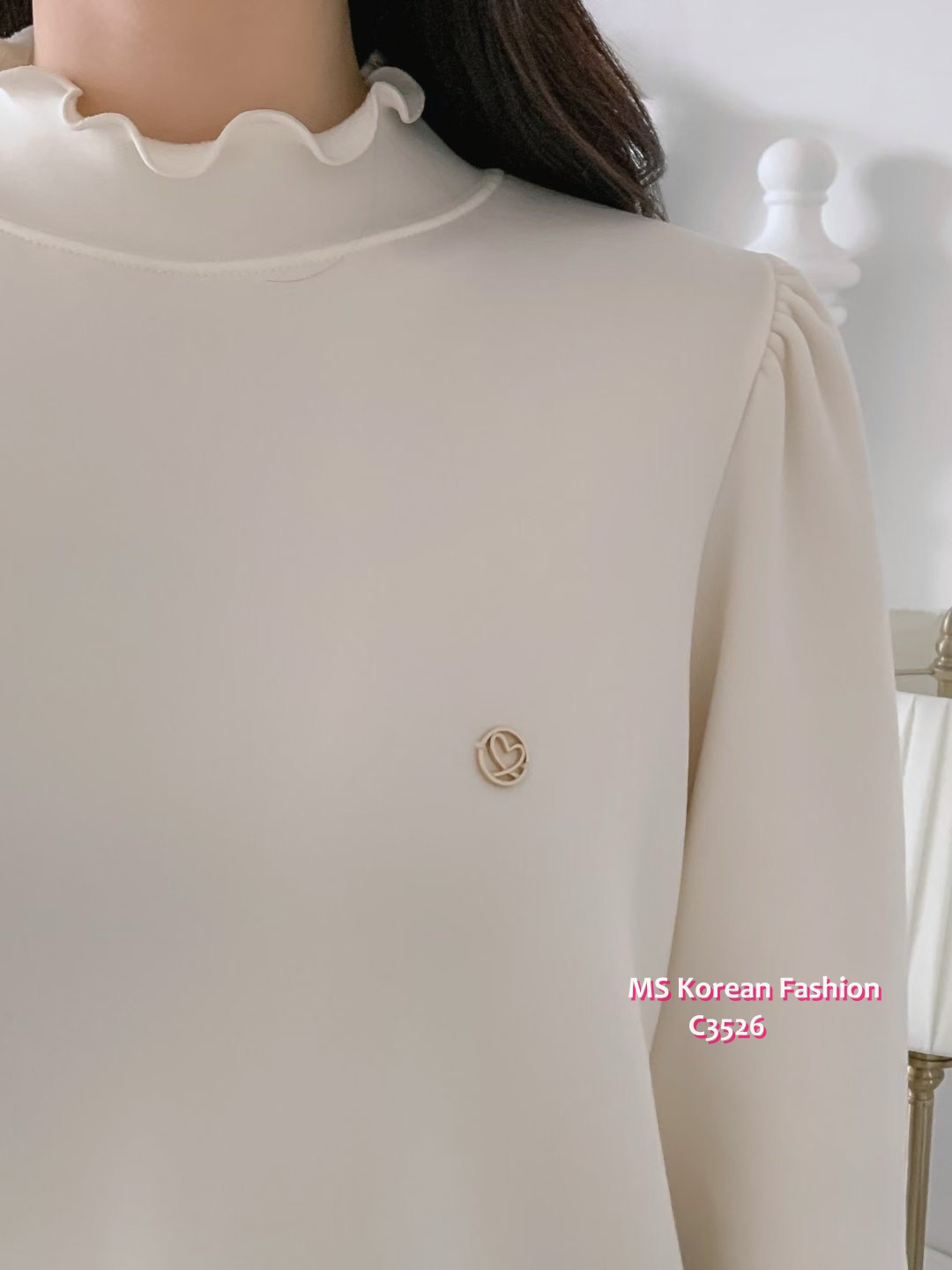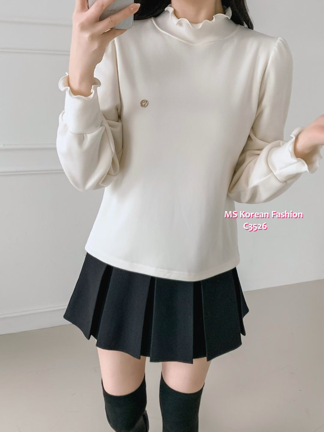 C3526 韓國🇰🇷淨色荷葉邊毛底top