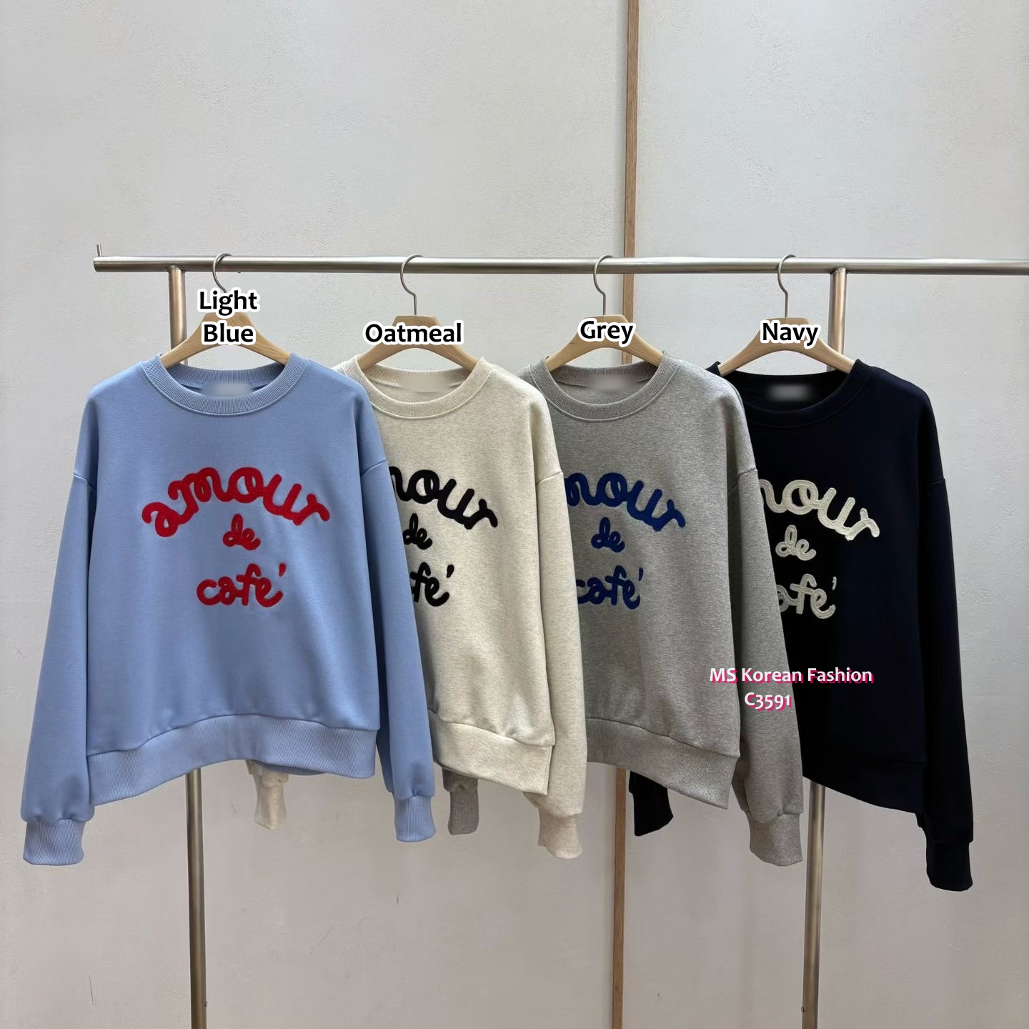 [訂貨約7-10個工作天] 💰💨快閃𝟰𝟴小時優惠: $𝟭𝟲𝟵💨[原價$199] ⏰優惠𝟭𝟴/𝟭 𝟮𝗽𝗺結束 ⏰ 秋冬衛衣唔嫌多 呢款扭繩拼色字母好eye catching呀😍 colour拼色好sharp醒 淺藍、燕麥、灰、寶藍 4色 尺寸 胸44"/長23" 📫1件加$15包順豐站/自助櫃,2件包順豐 📱查詢及Order可Inbox或Whatsapp 6317 3061