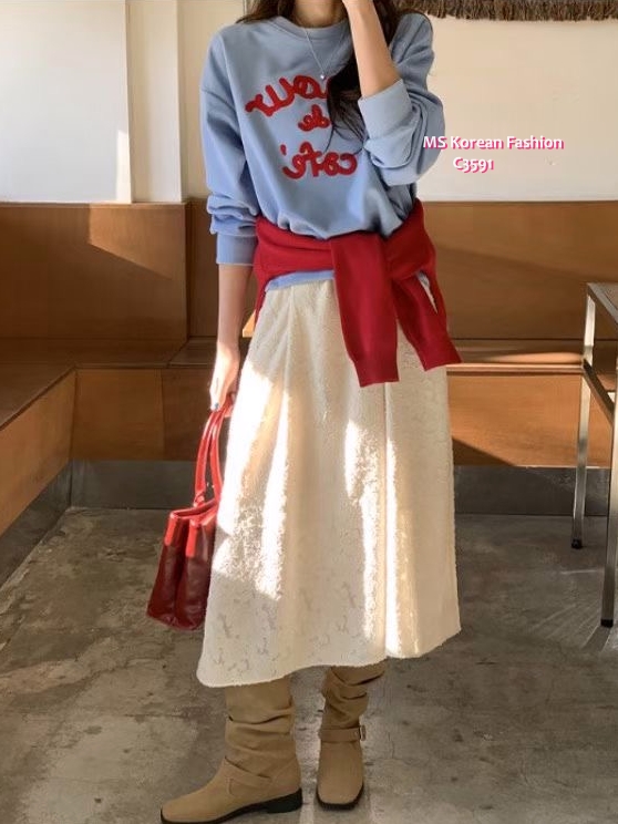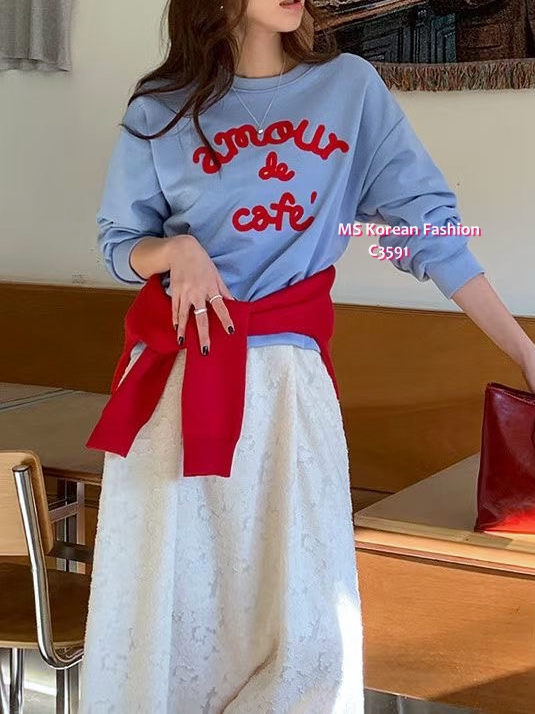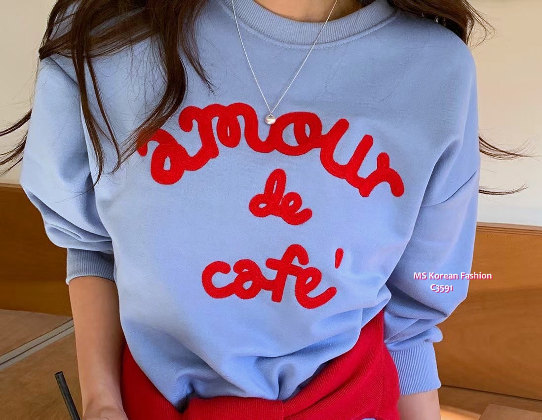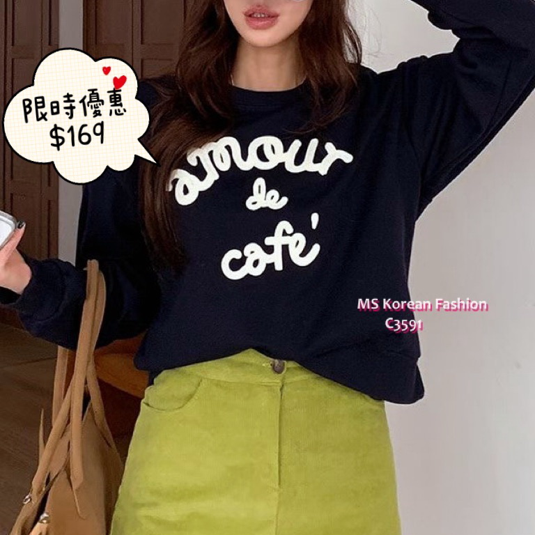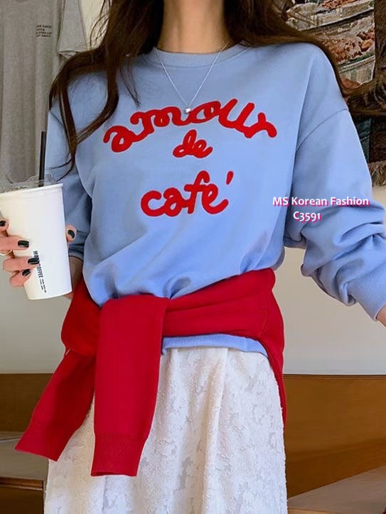 C3591 韓國🇰🇷扭繩拼色字母衛衣