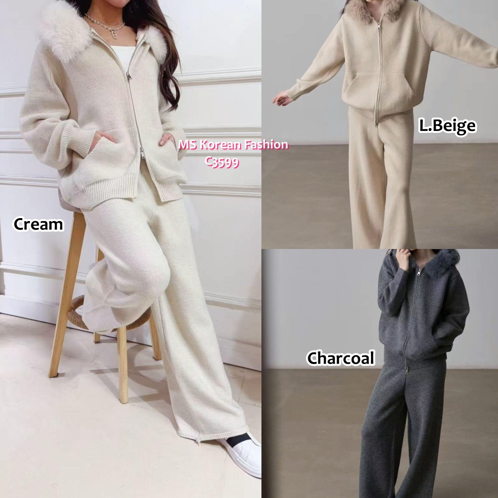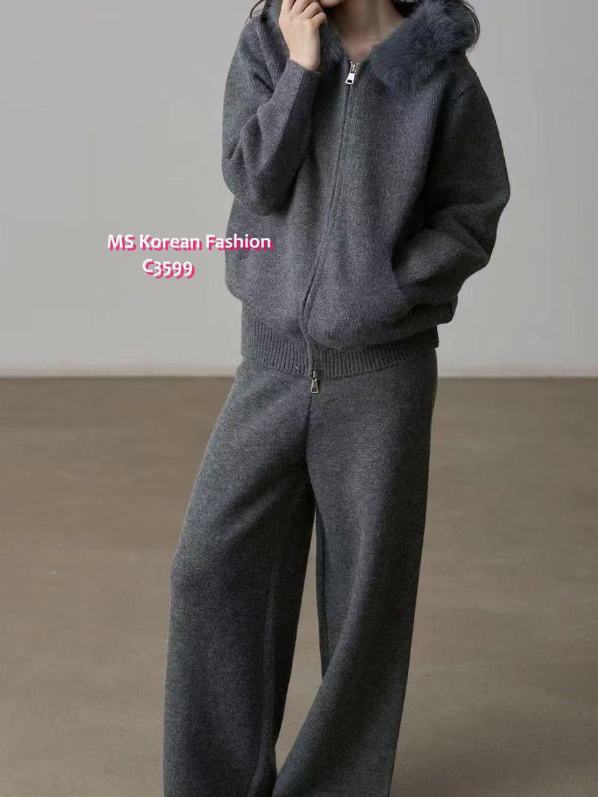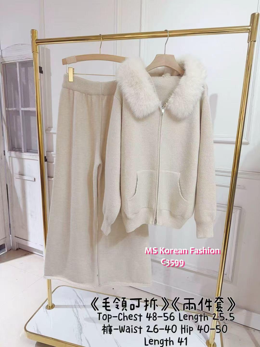 C3599 韓國🇰🇷毛領外套+休閒褲Set