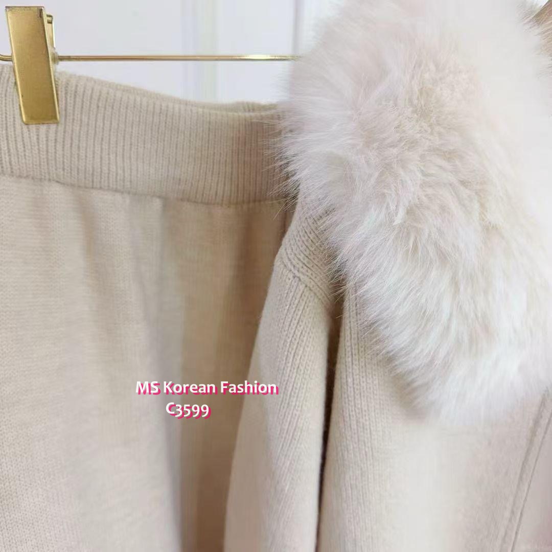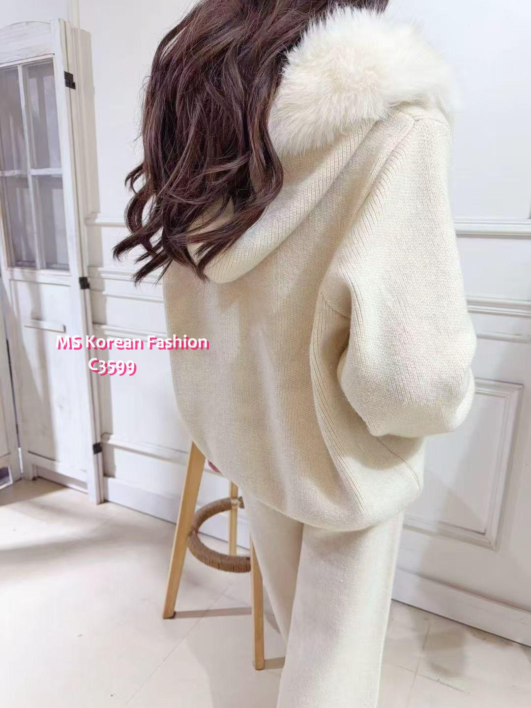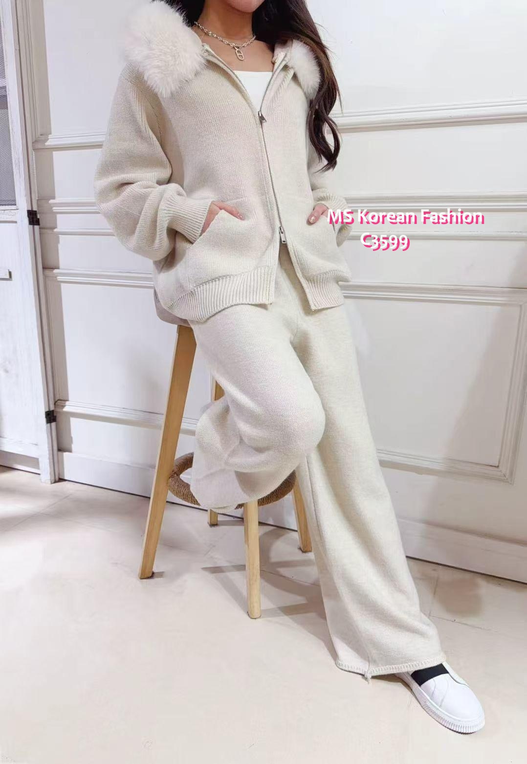 C3599 韓國🇰🇷毛領外套+休閒褲Set