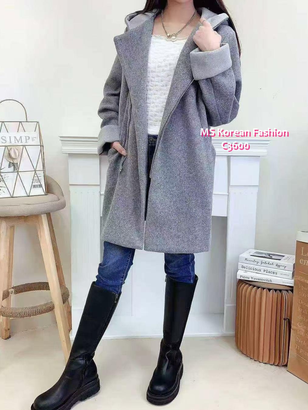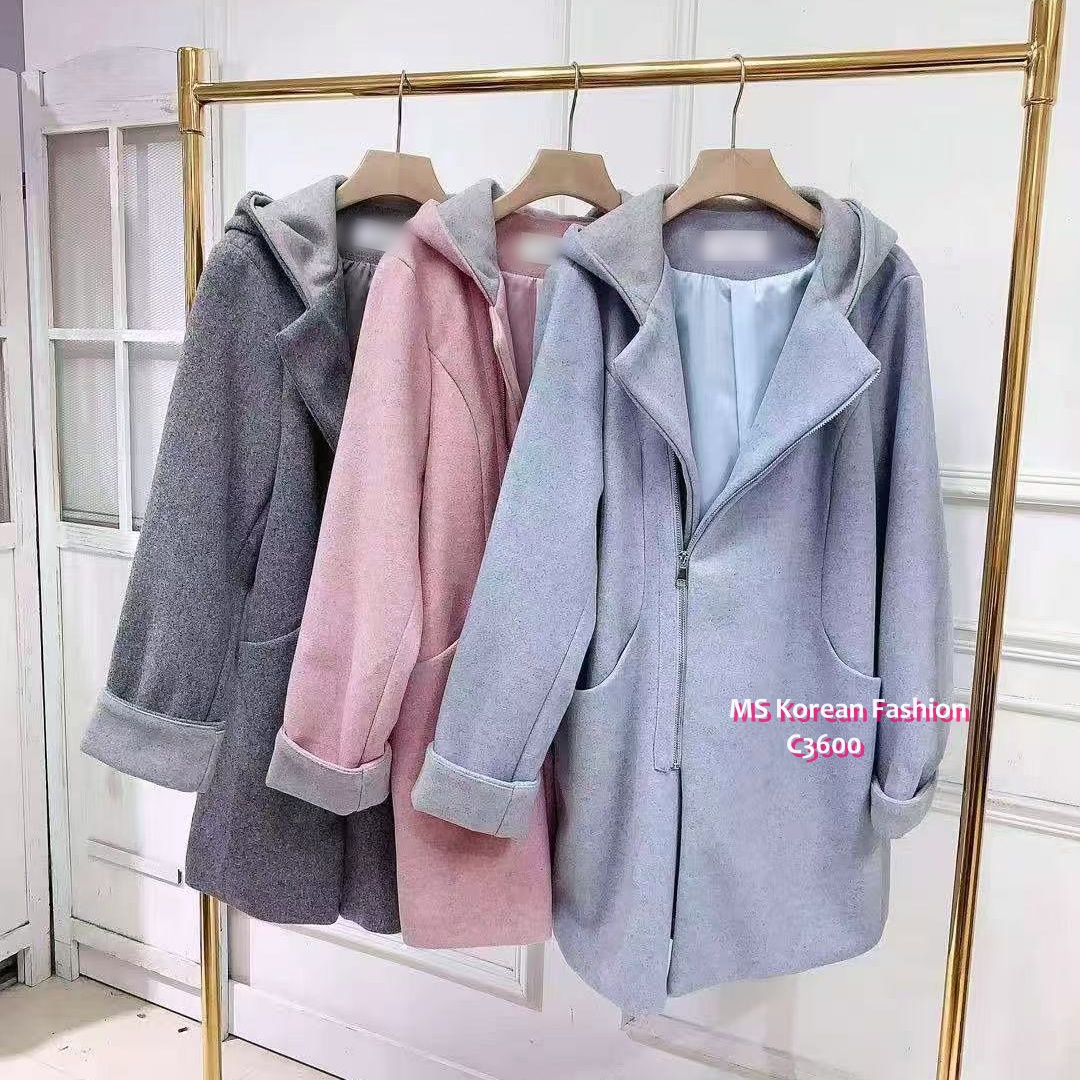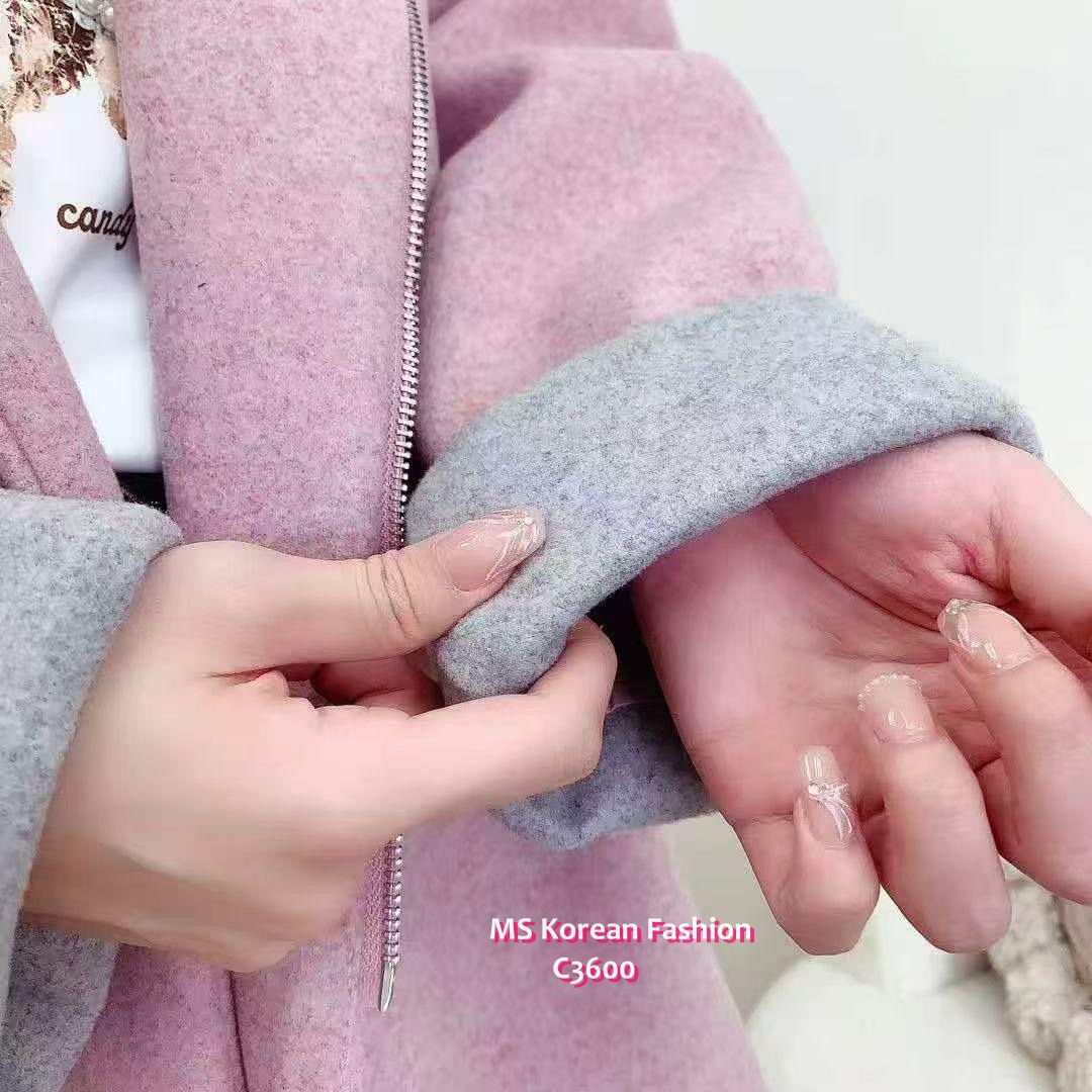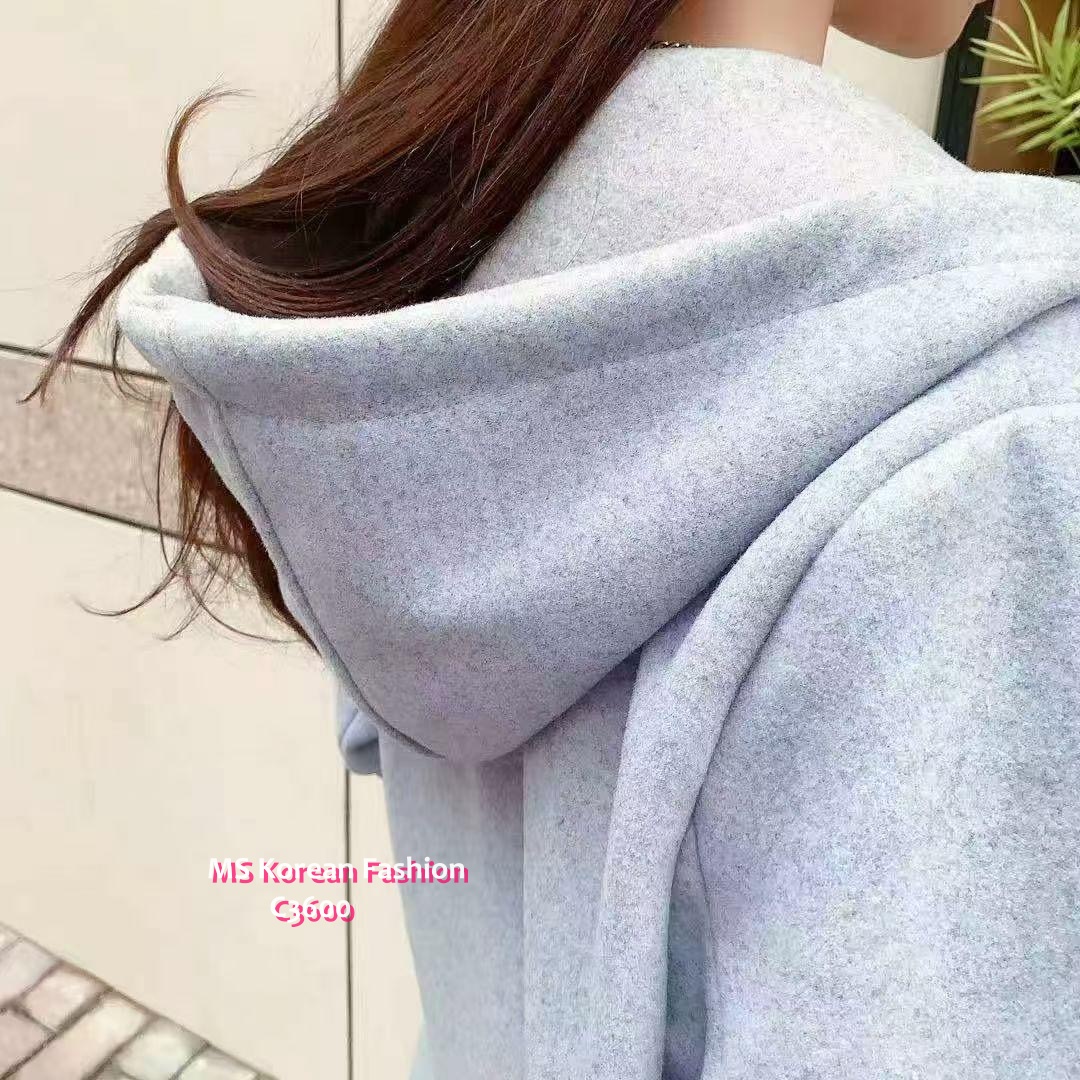 C3600 韓國🇰🇷拼色有帽滑絨外套