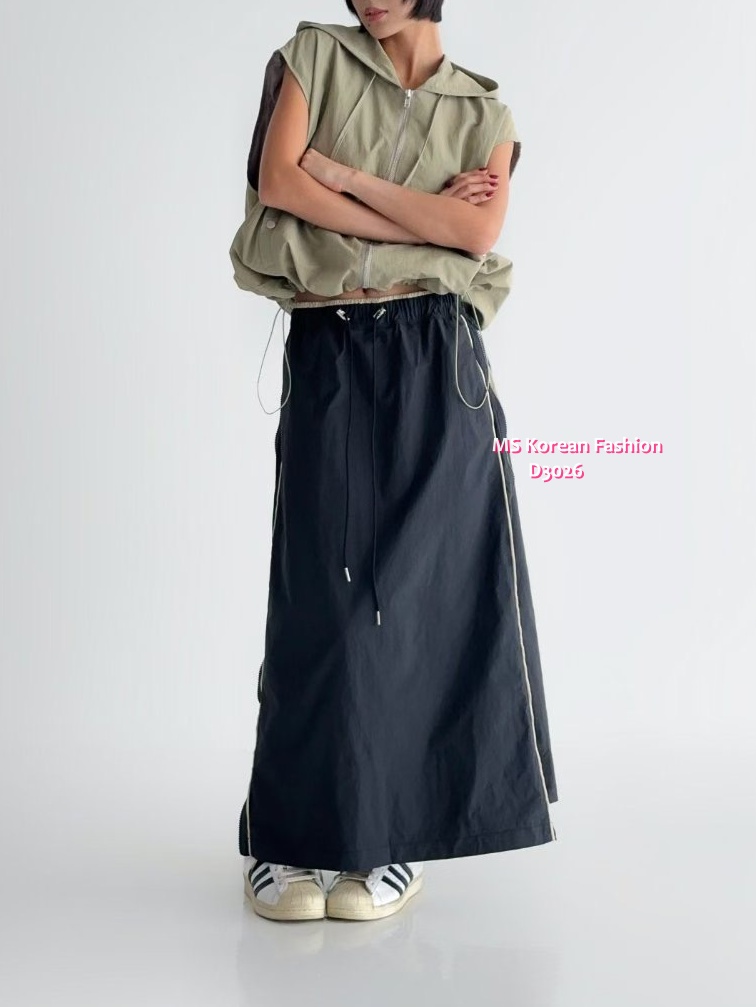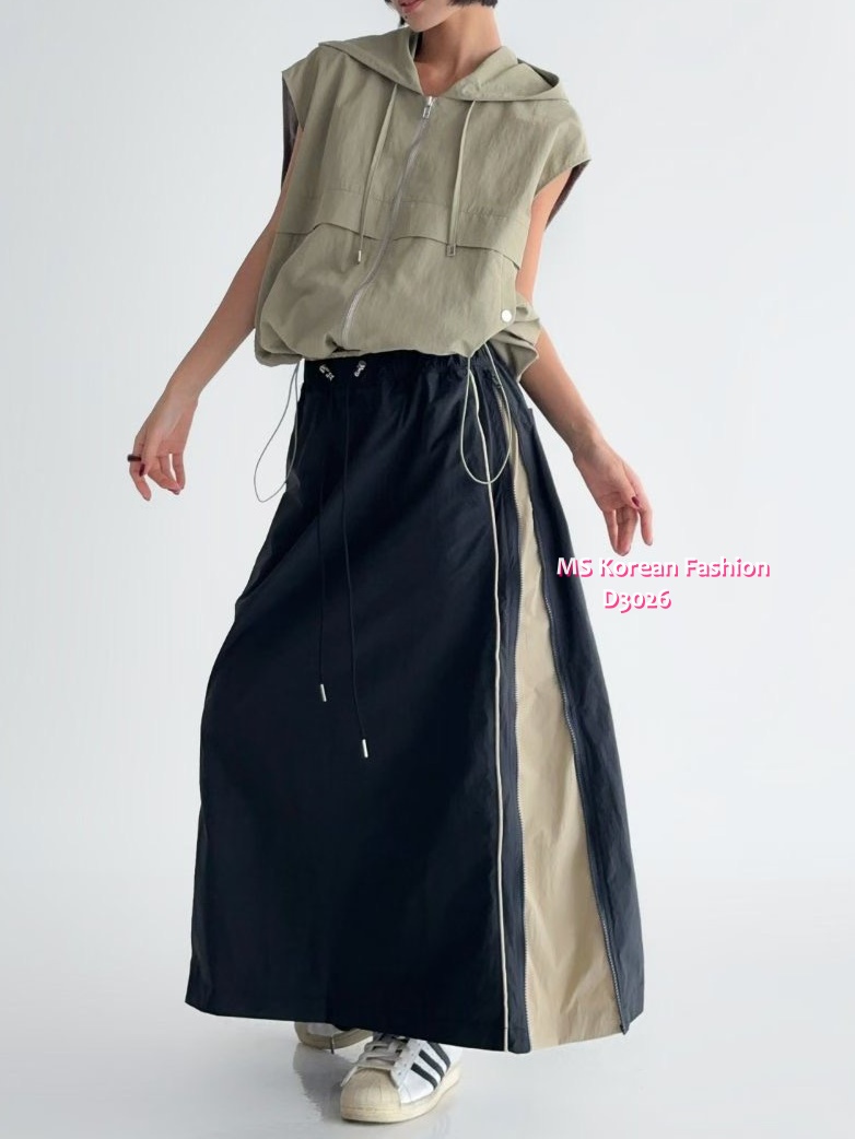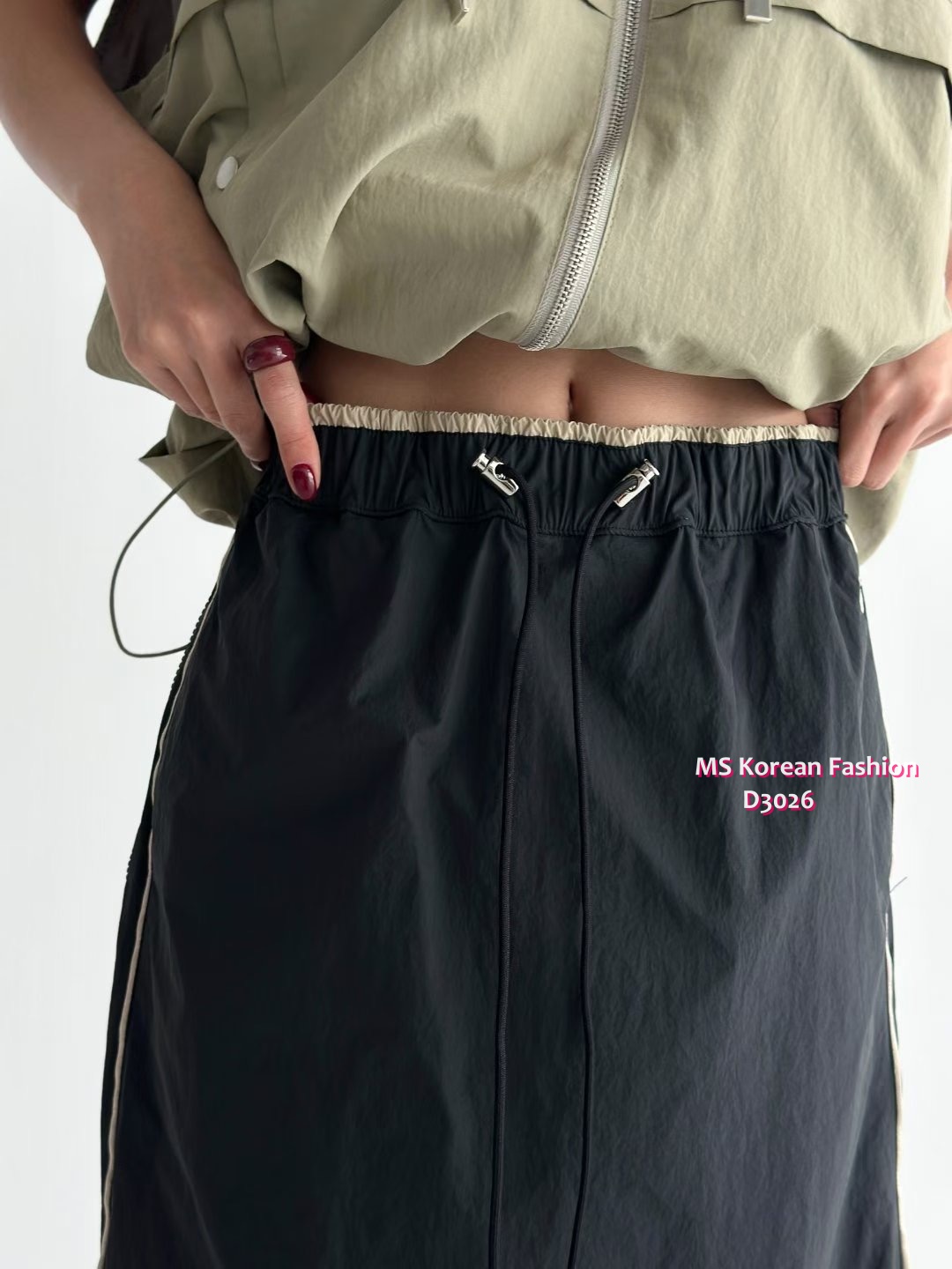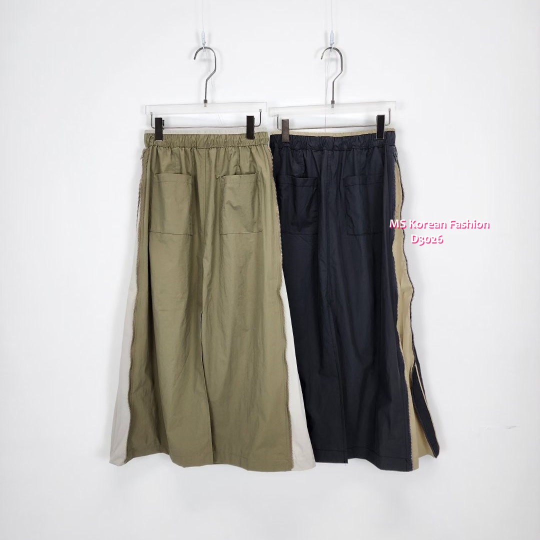 [訂貨約7-10個工作天] 💰💞Happy Price: $329 中長款運動半裙 風褸料 長度過膝 全橡筋腰 做埋索繩位可自由調較鬆緊💯 肥D瘦D都carry到😎 最特別係裙兩側做左拉鏈位 拉埋係淨色裙 拉開拉鏈就變身拼色裙 仲變身A-line cutting 遮下身肉肉一流✌ 簡單襯對波鞋已經好睇 卡其、黑 2色 尺寸 腰26">拉開38"/長34" 📫1件加$15包順豐站/自助櫃,2件包順豐(順豐站/自助櫃/工商/住宅) 📱查詢及Order可Inbox或Whatsapp 6317 3061