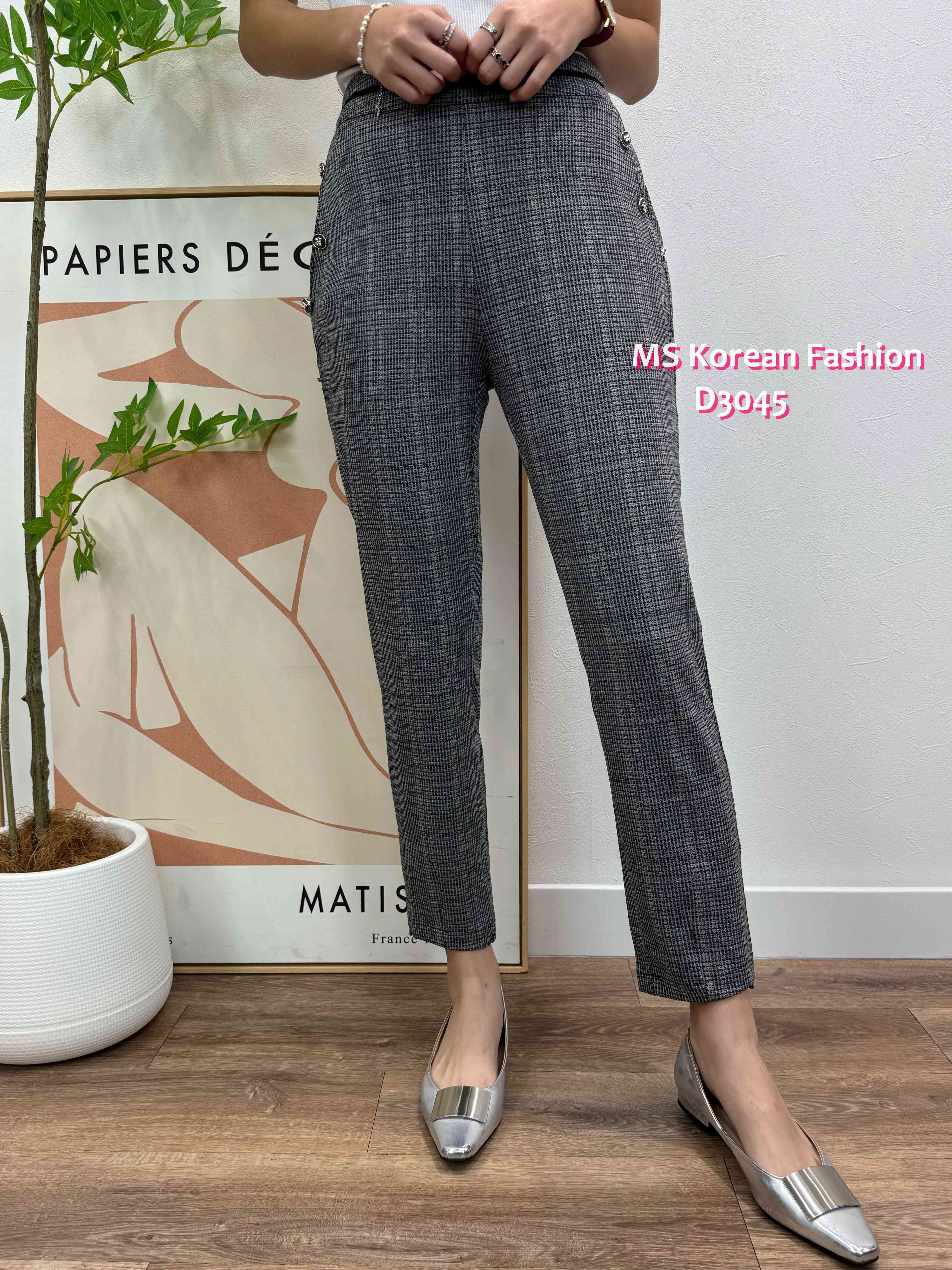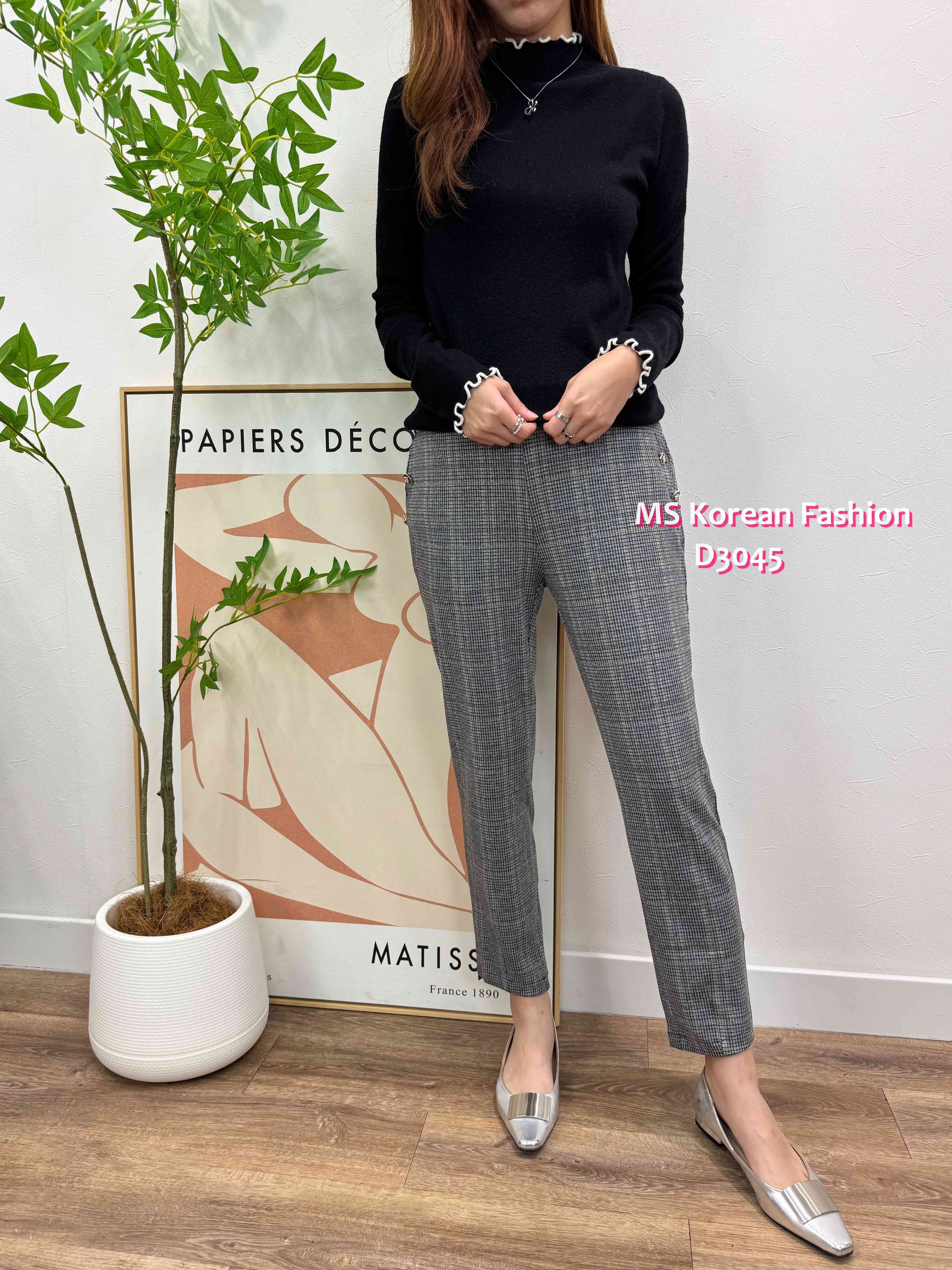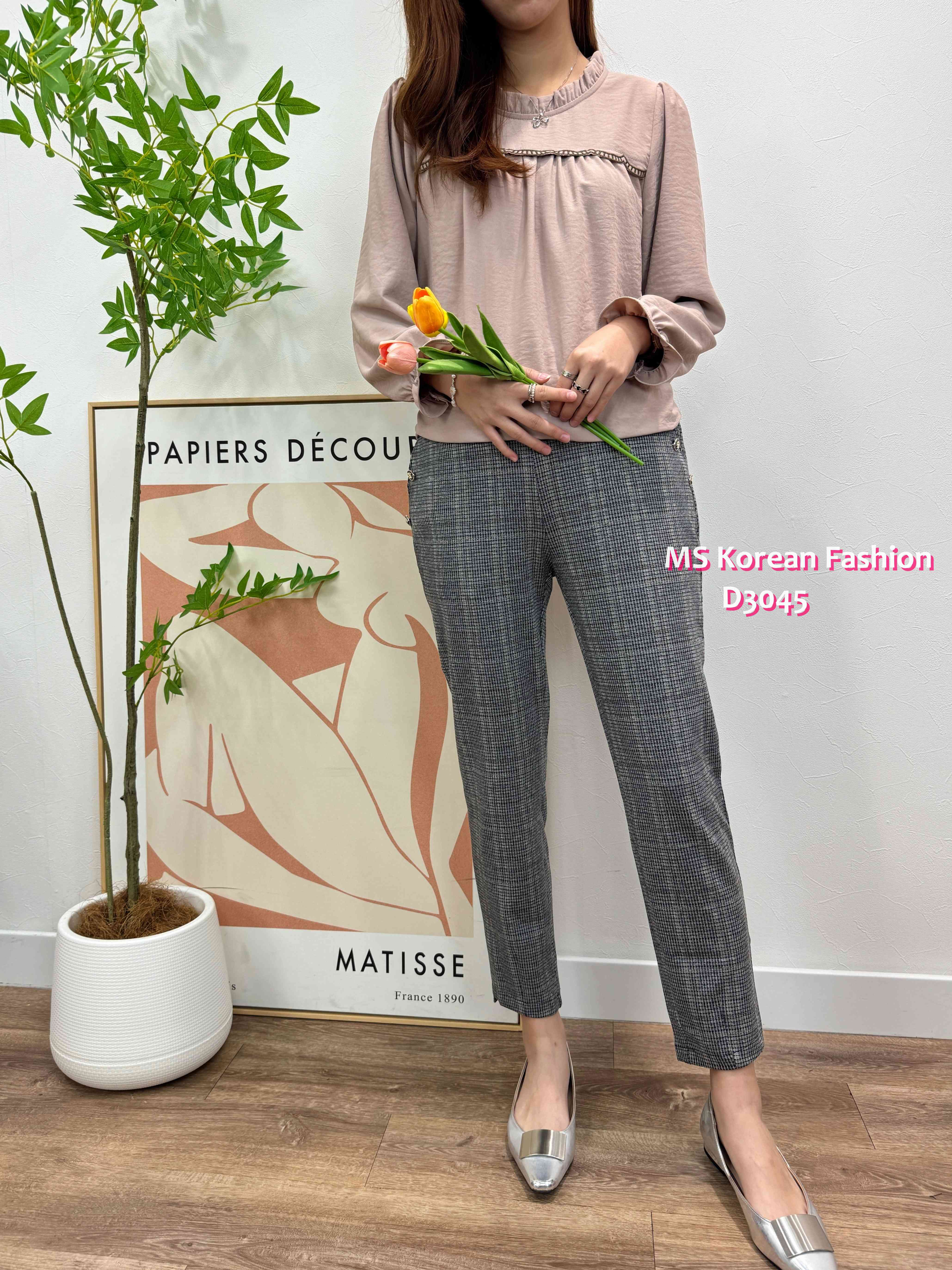 D3045 韓國🇰🇷薄料格仔西褲