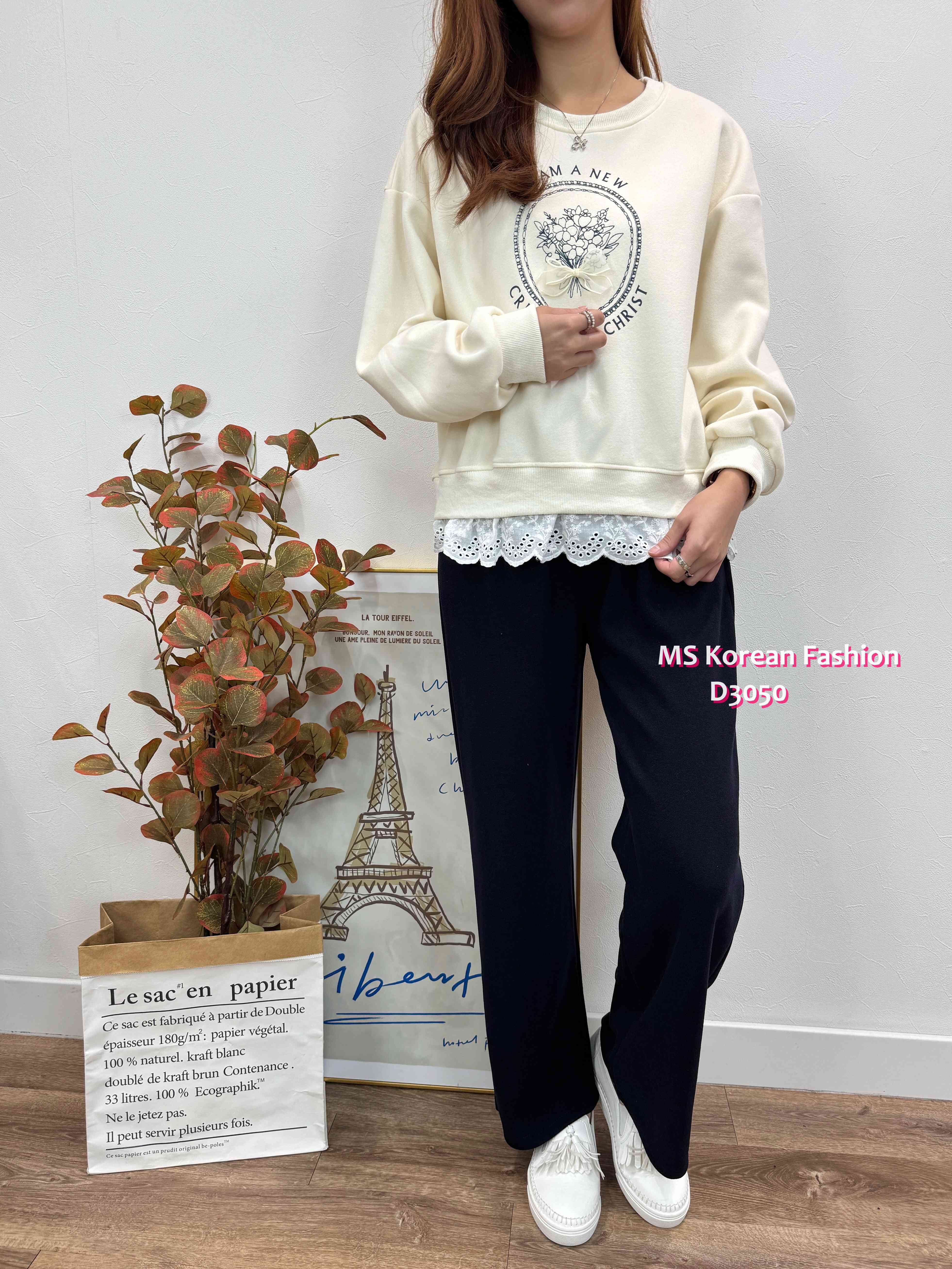 D3050 韓國🇰🇷厚料闊筒休閒褲