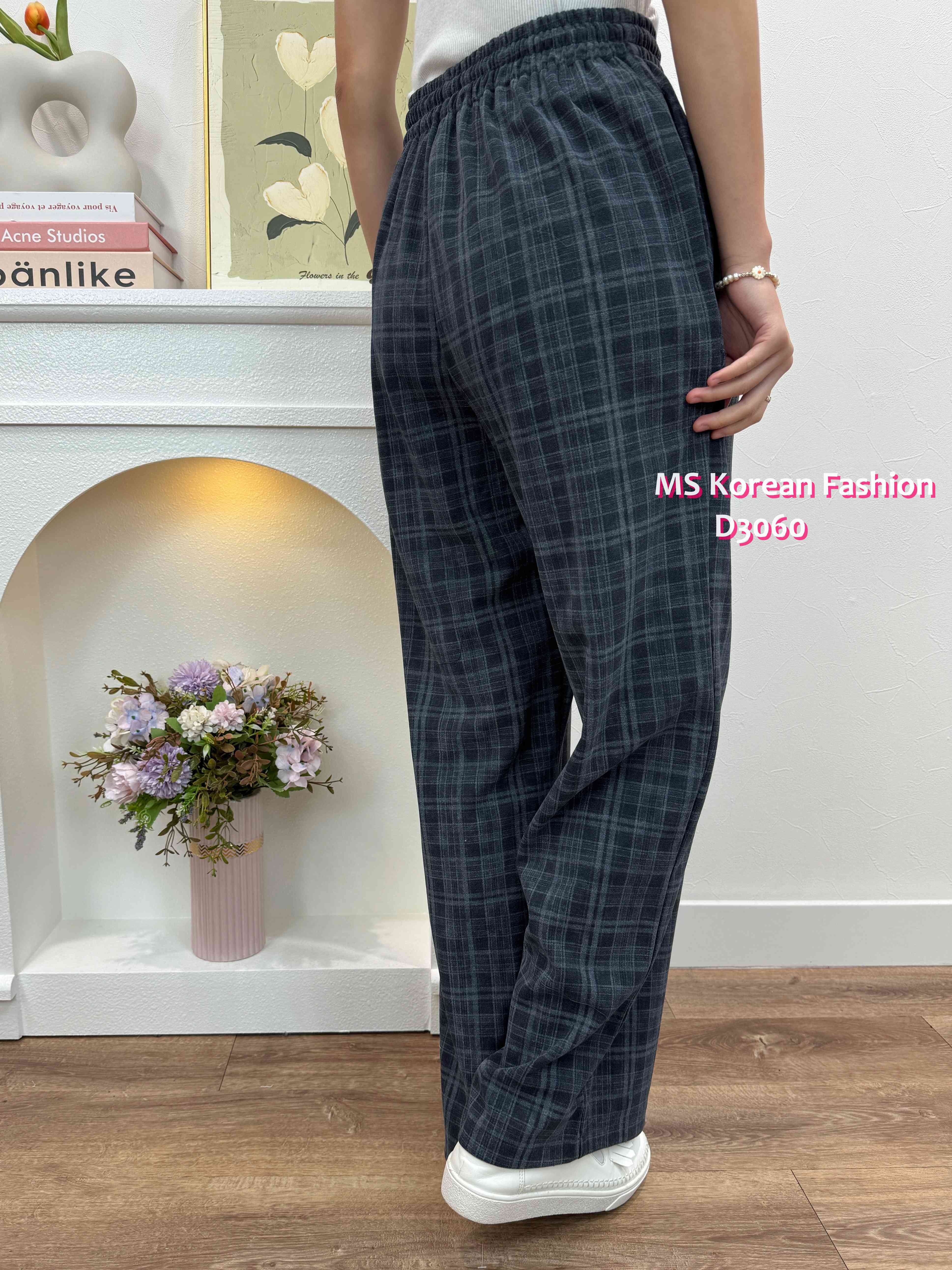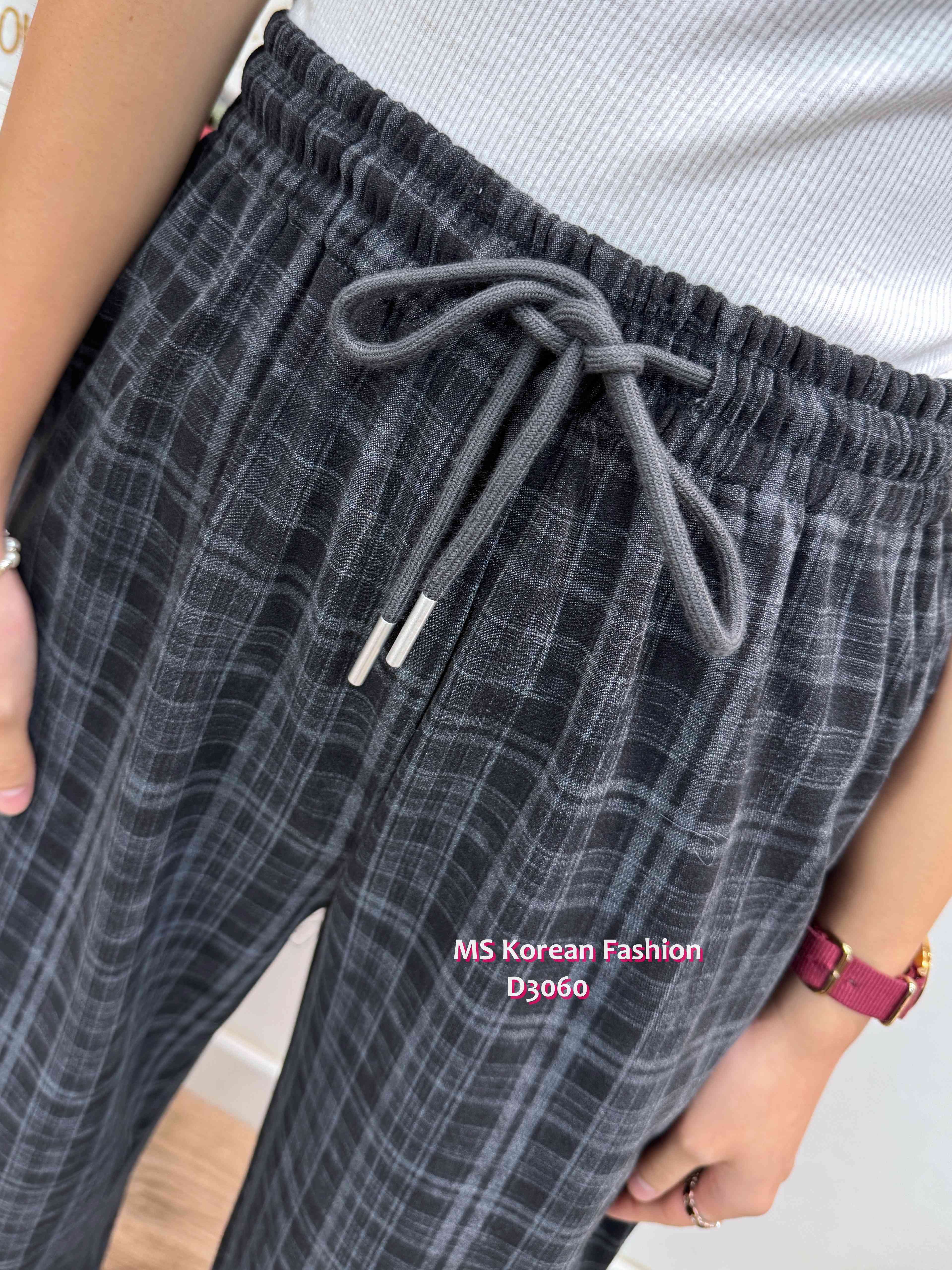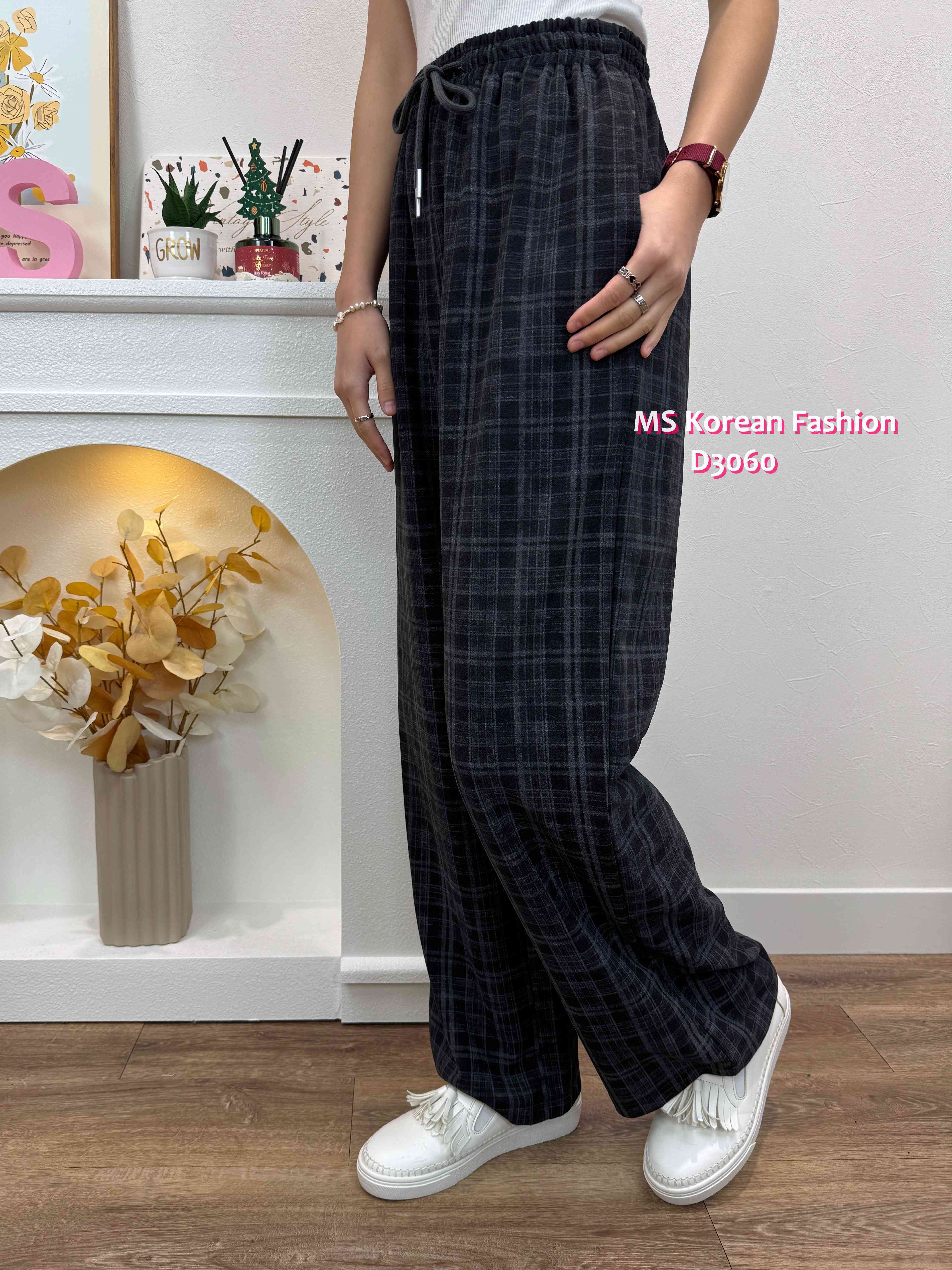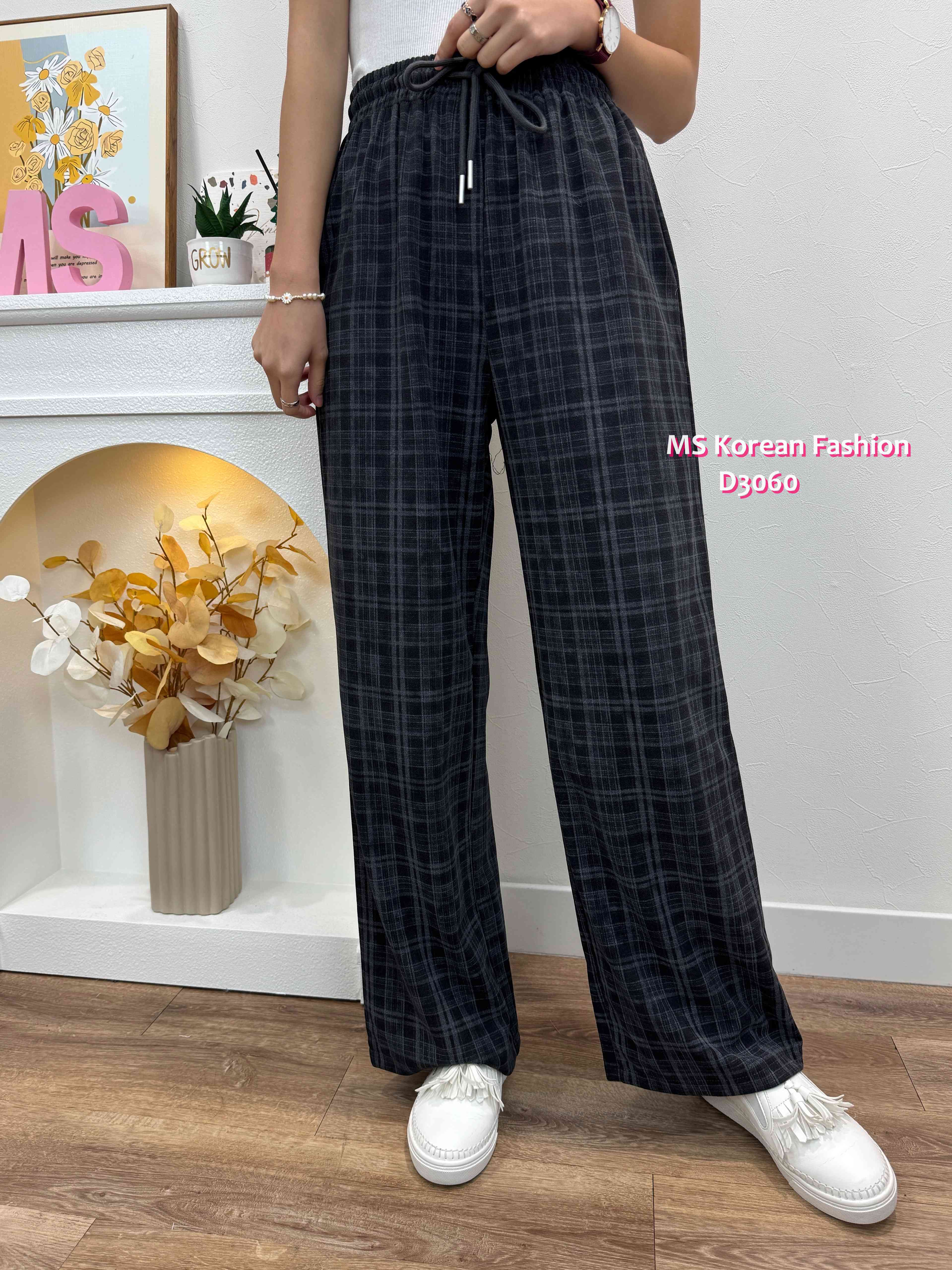 D3060 韓國🇰🇷格紋休閒闊筒褲