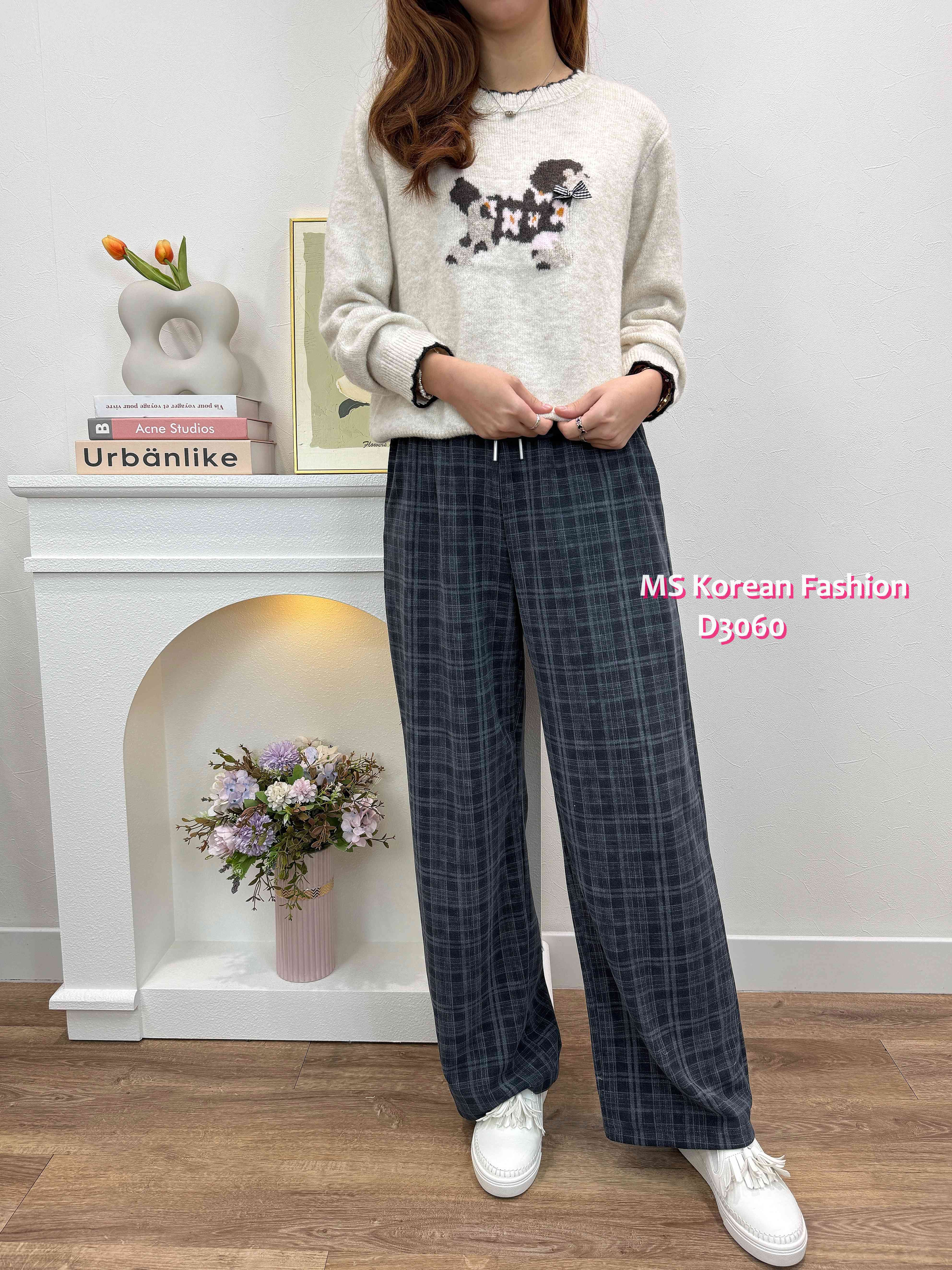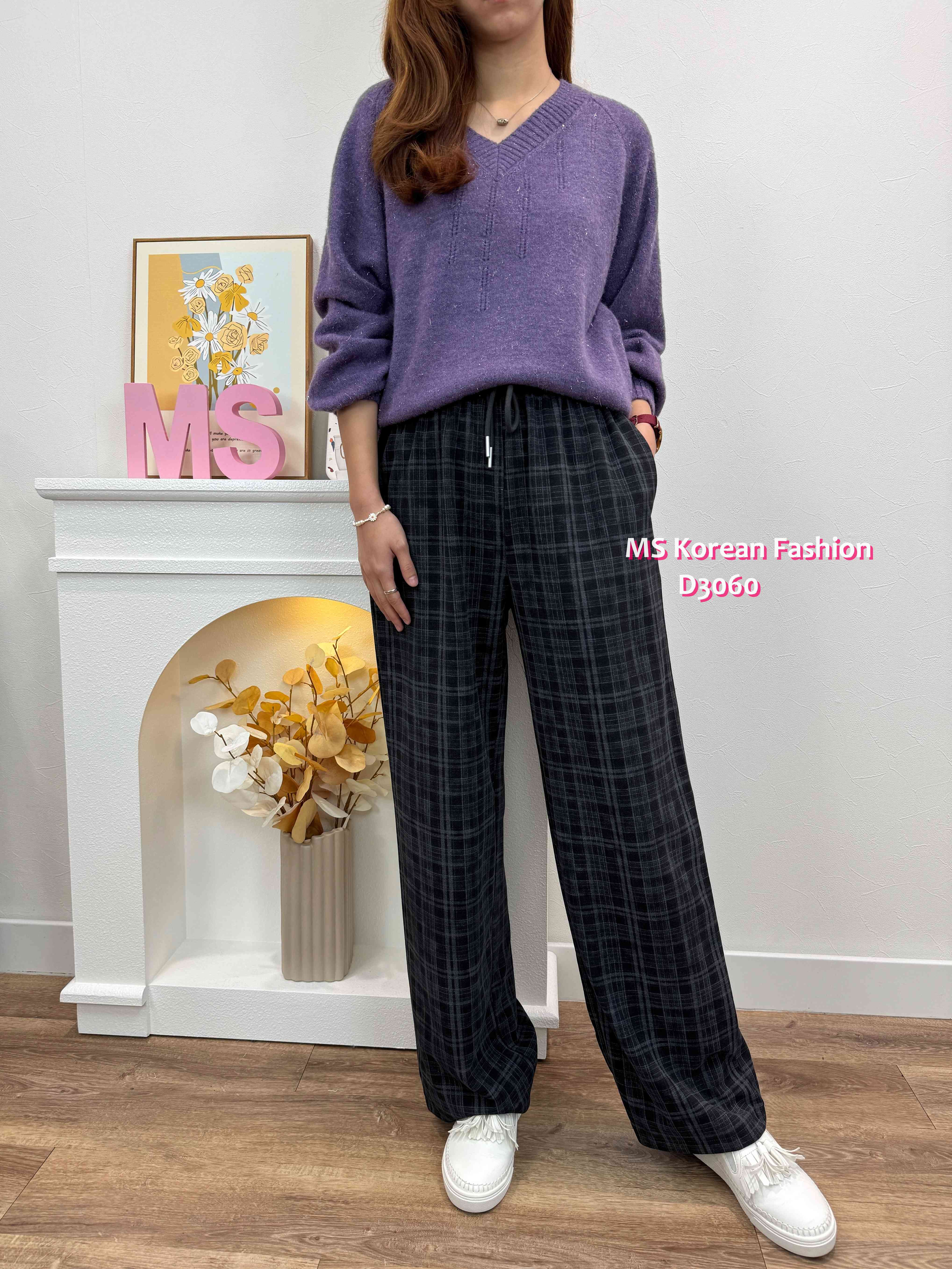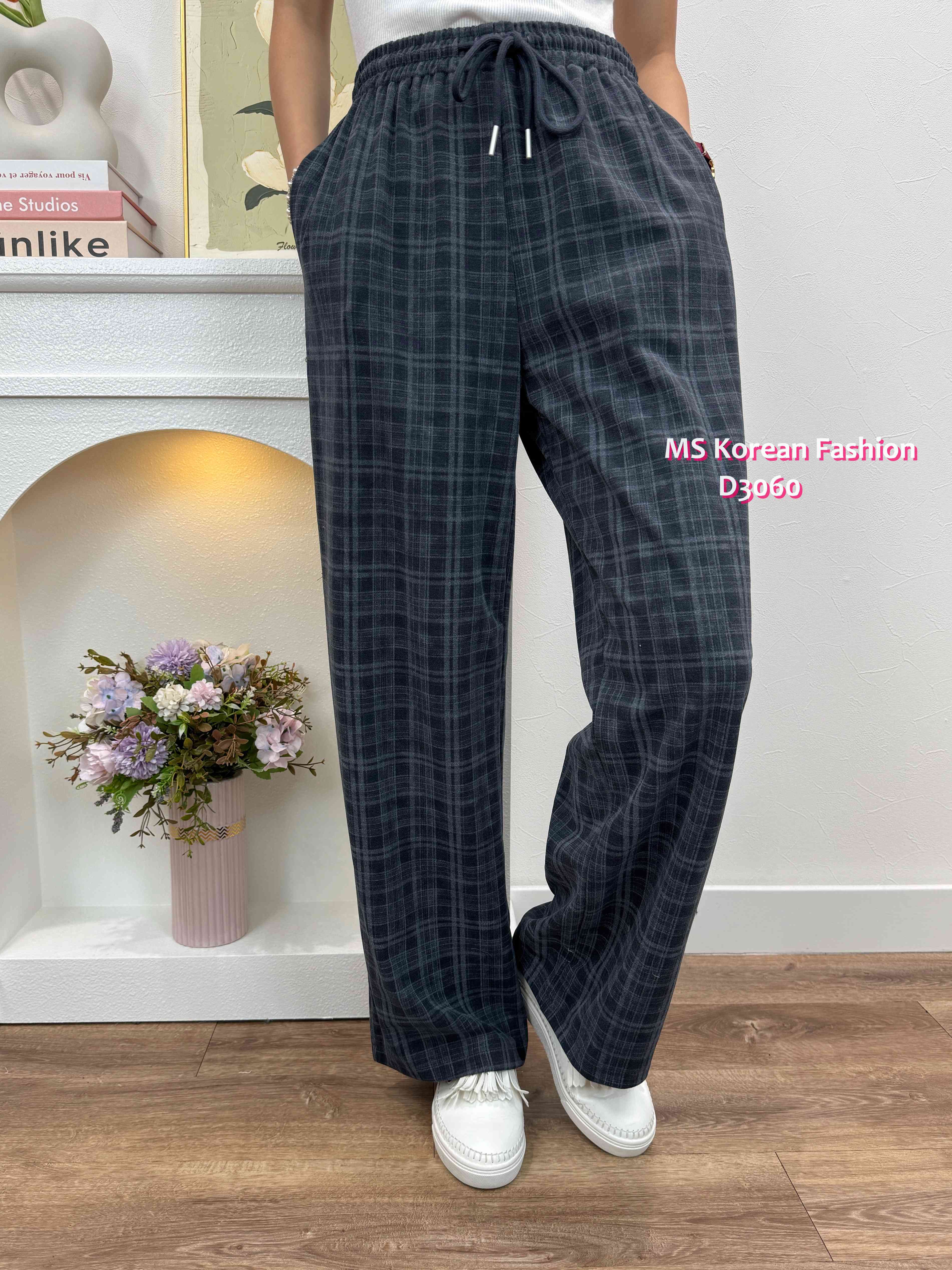 D3060 韓國🇰🇷格紋休閒闊筒褲
