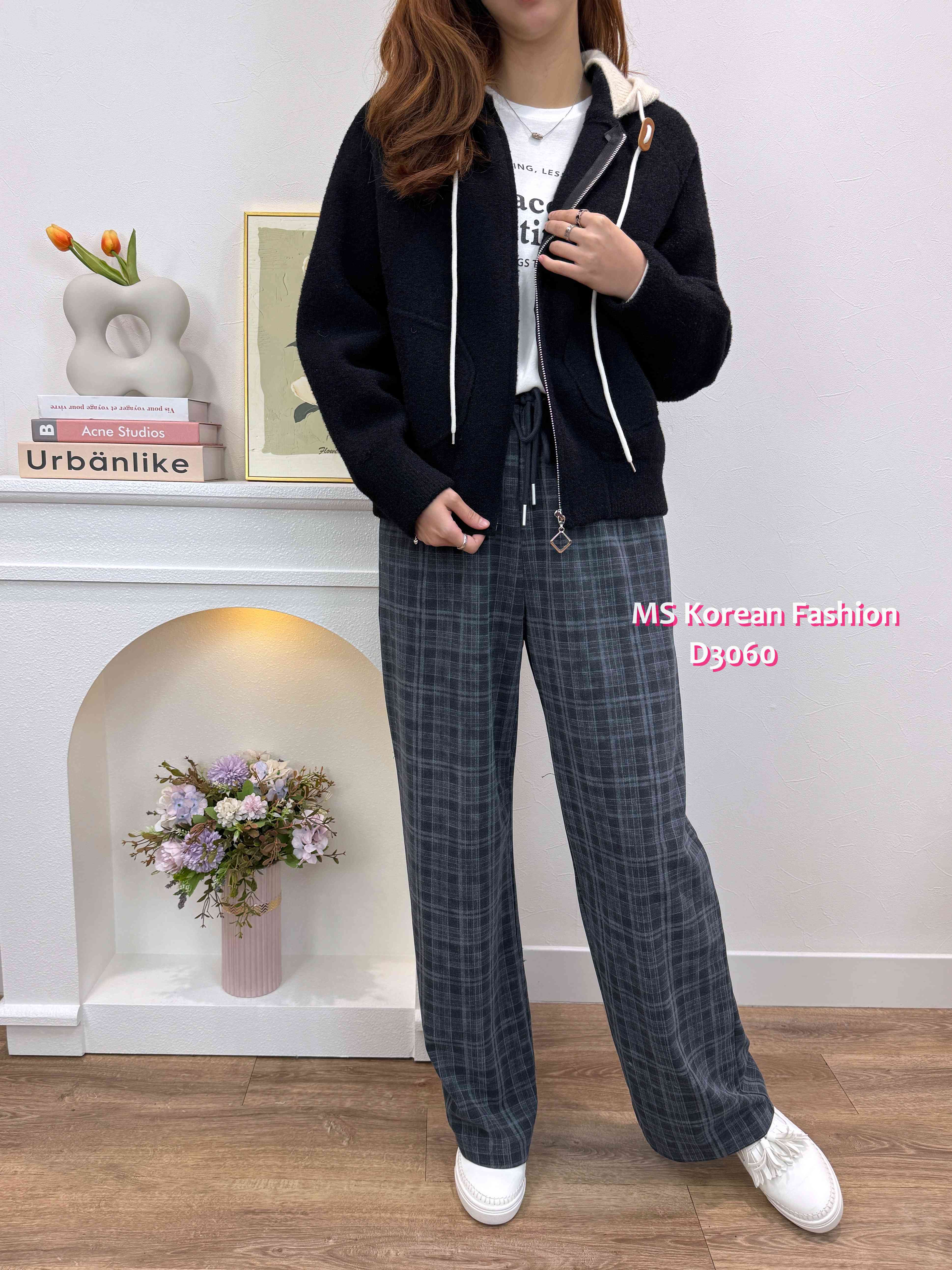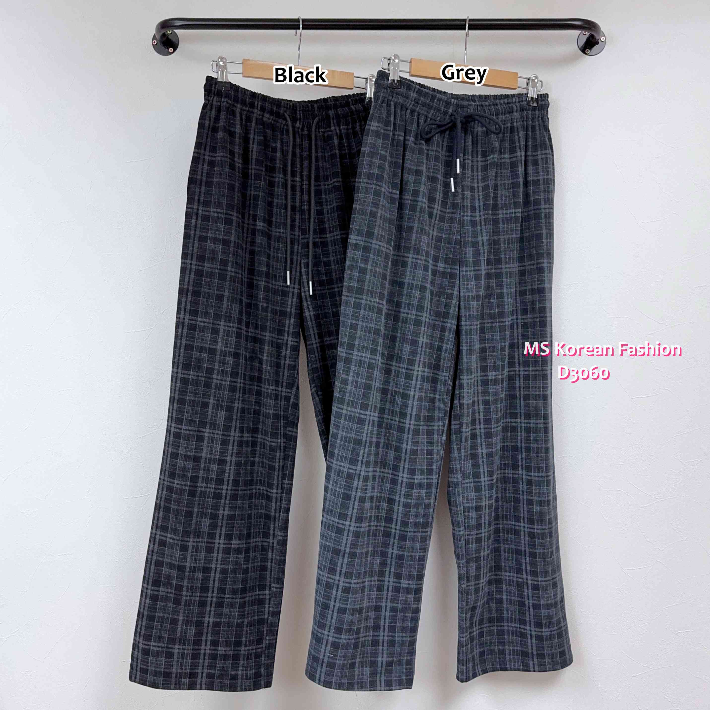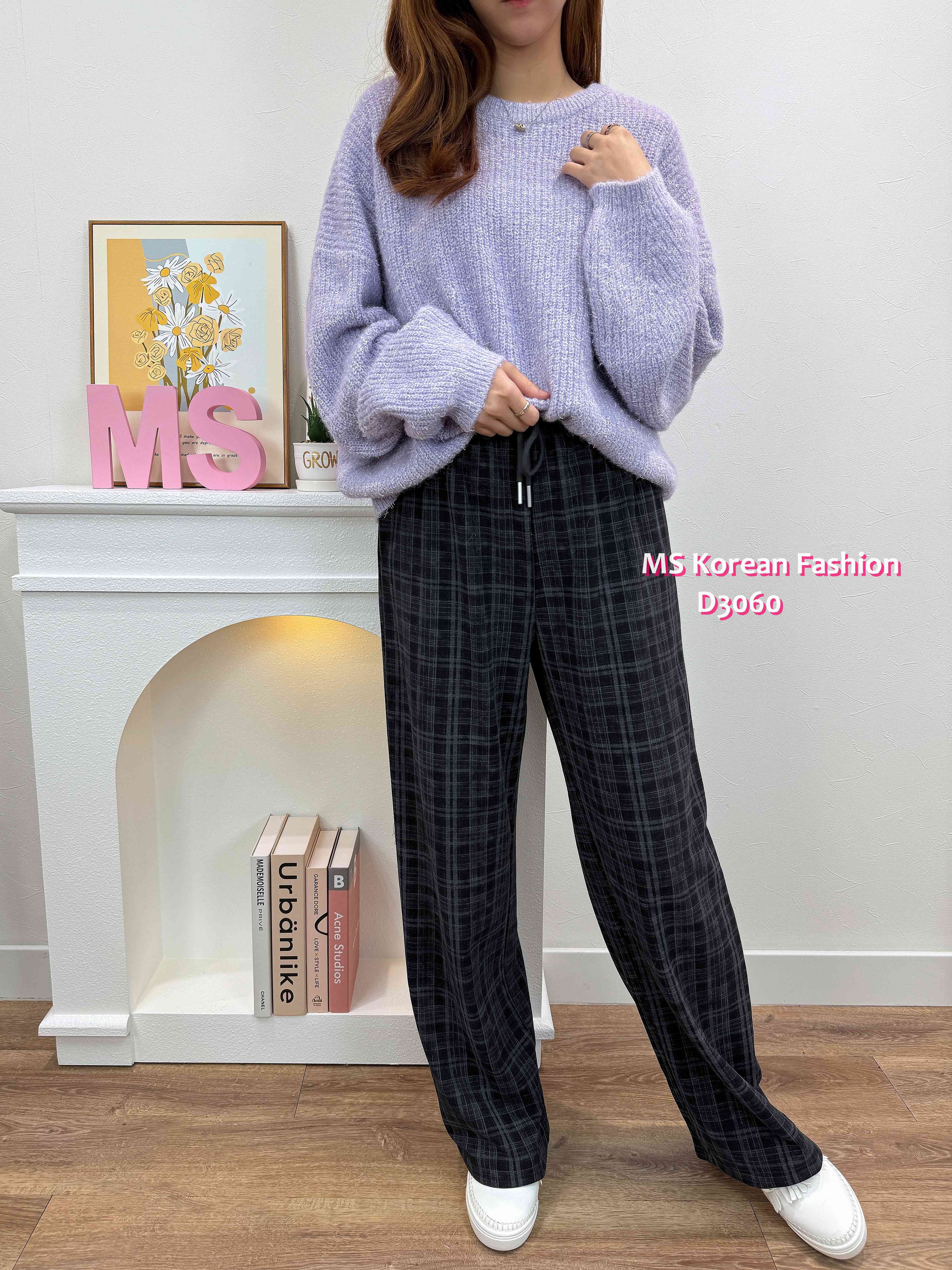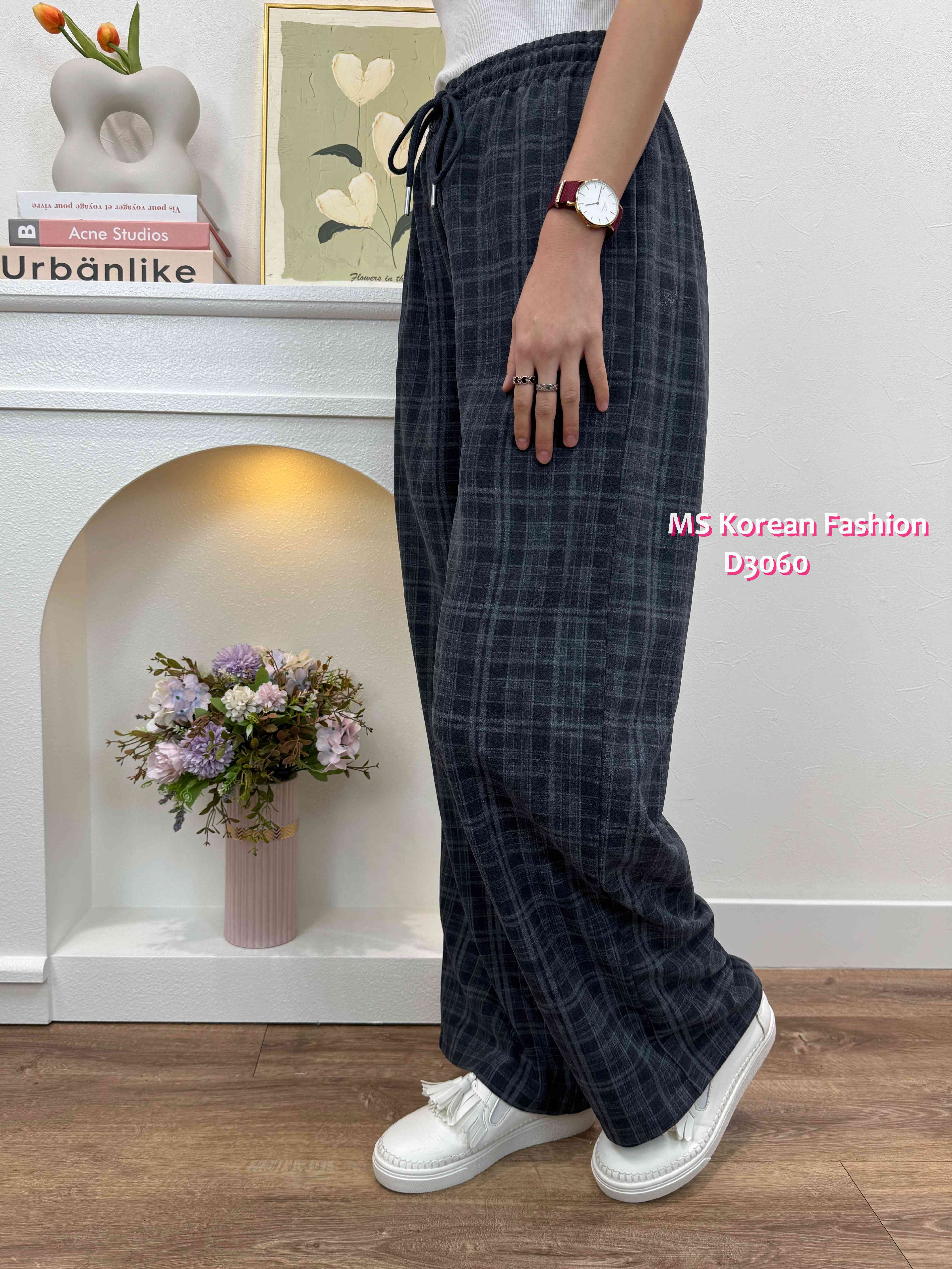 D3060 韓國🇰🇷格紋休閒闊筒褲