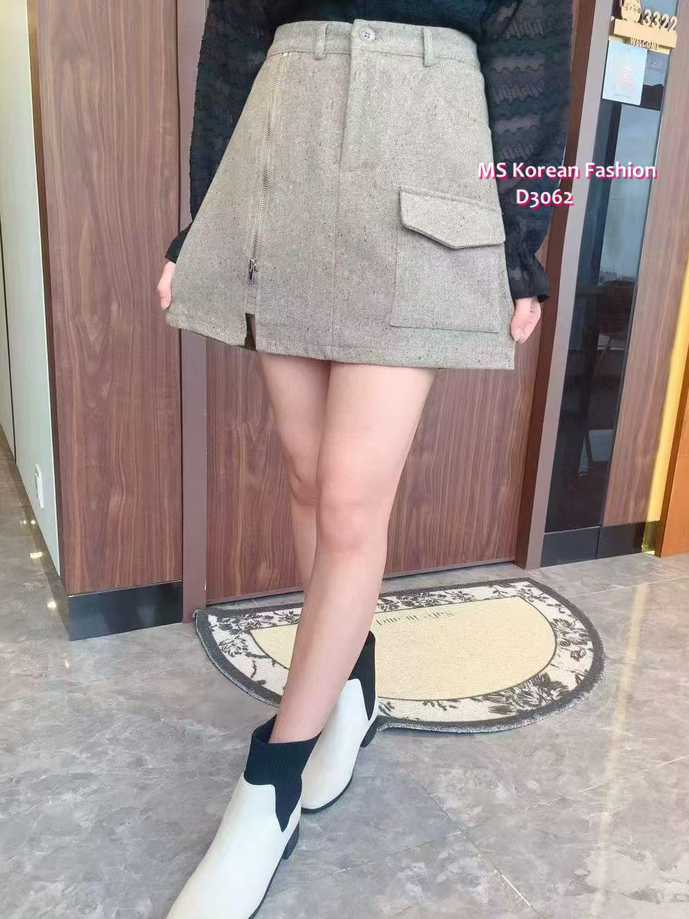 D3062 韓國🇰🇷暗紋拉鏈半裙