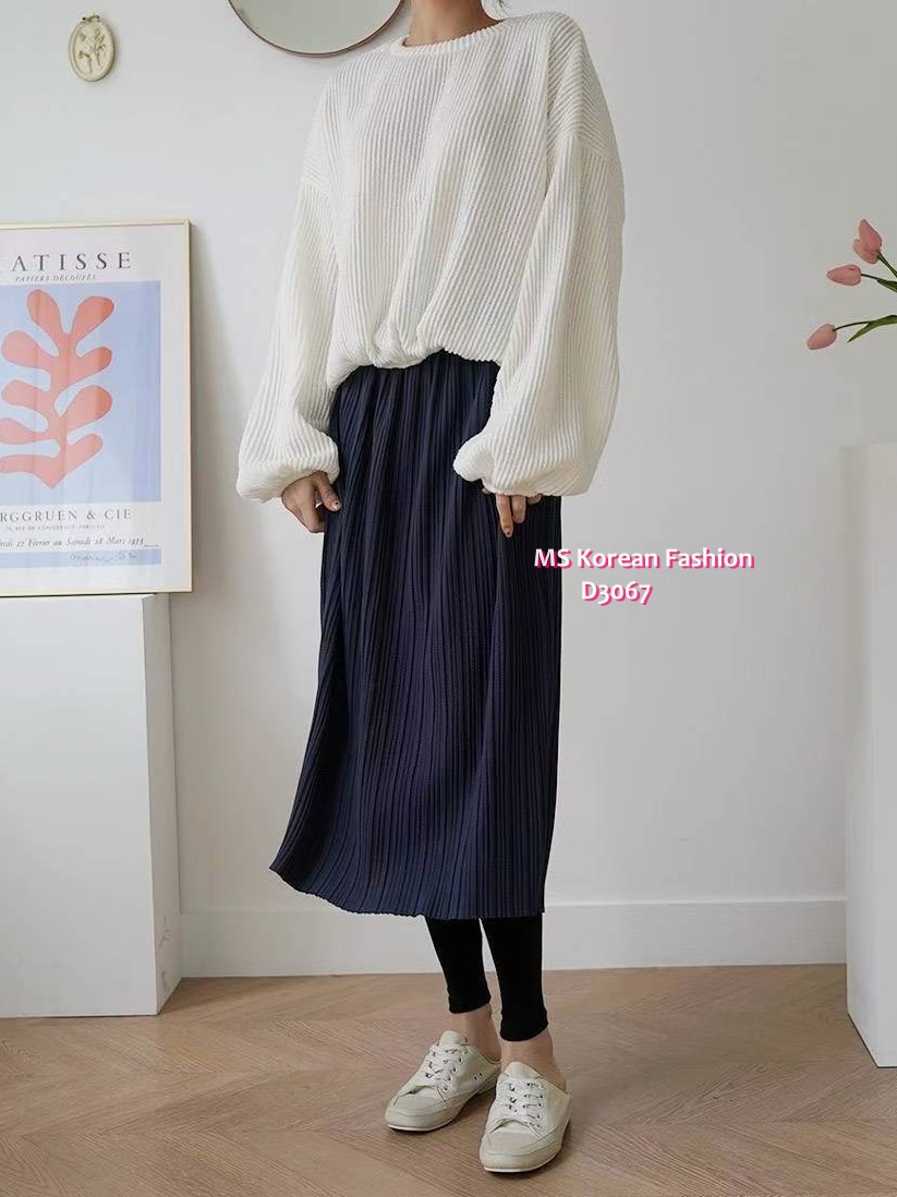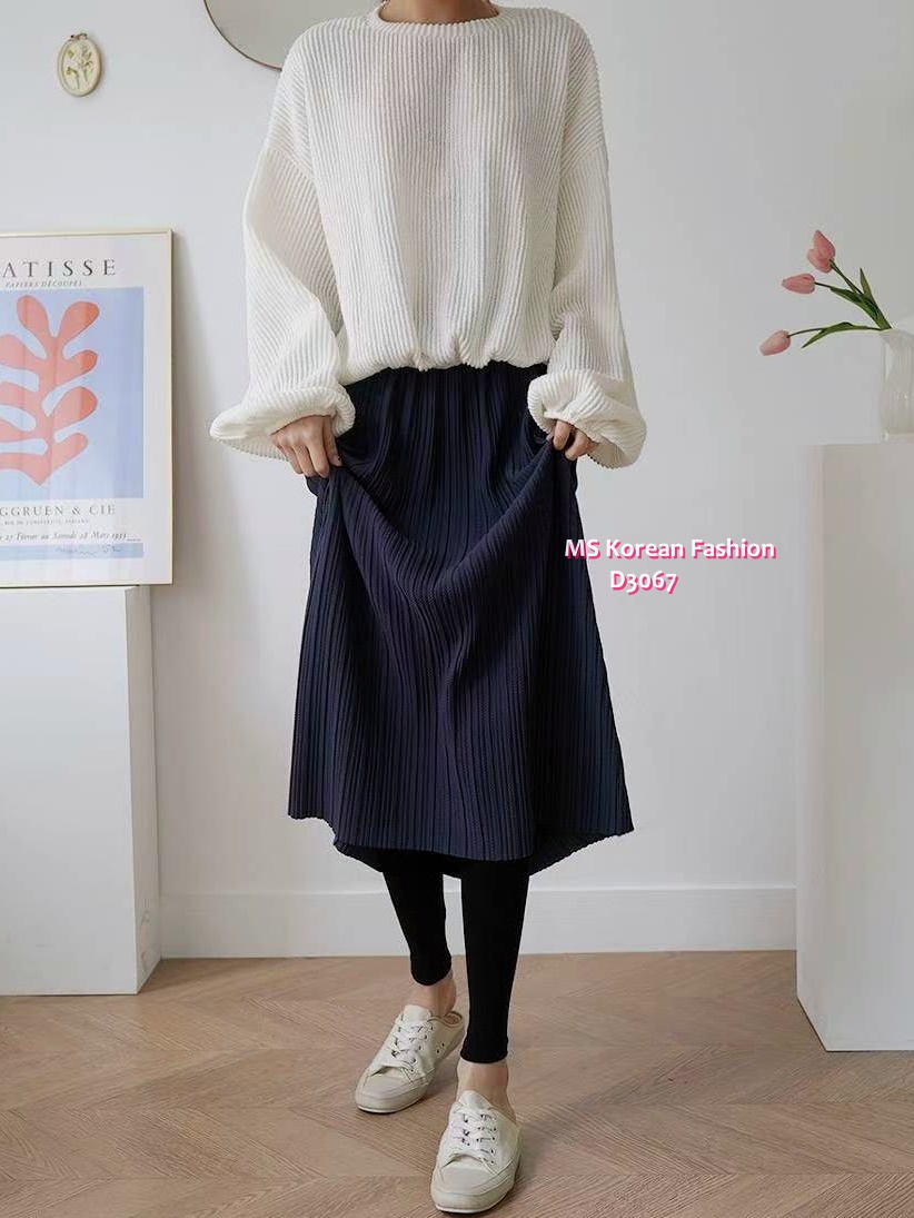 D3067 韓國🇰🇷暗直紋中長裙連leggings