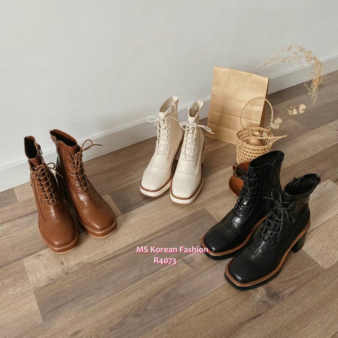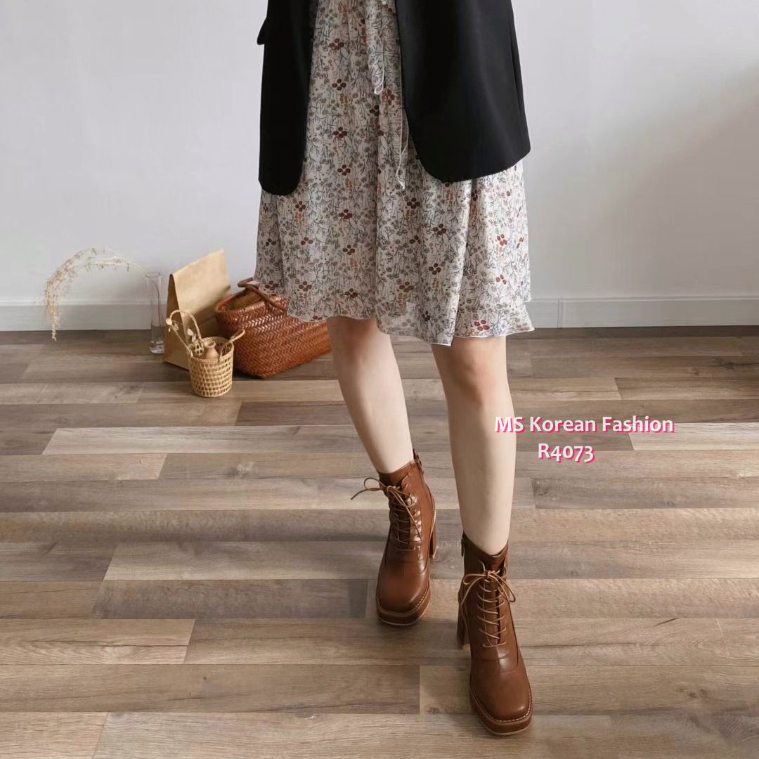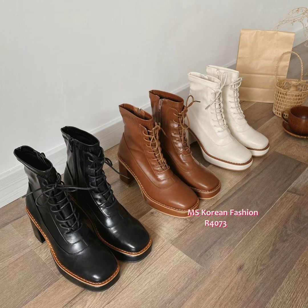 R4073 韓國🇰🇷方頭綁帶高跟Boot