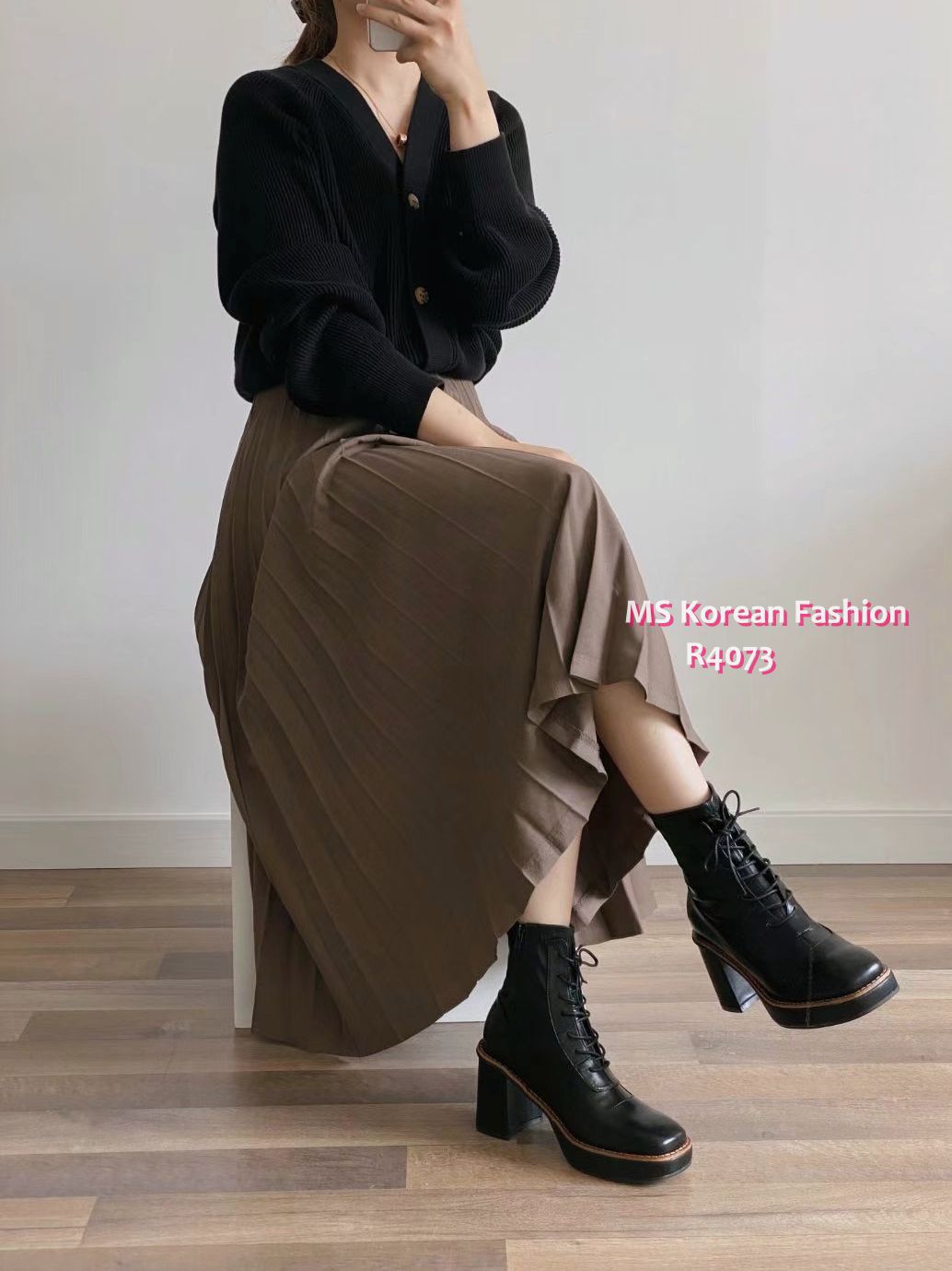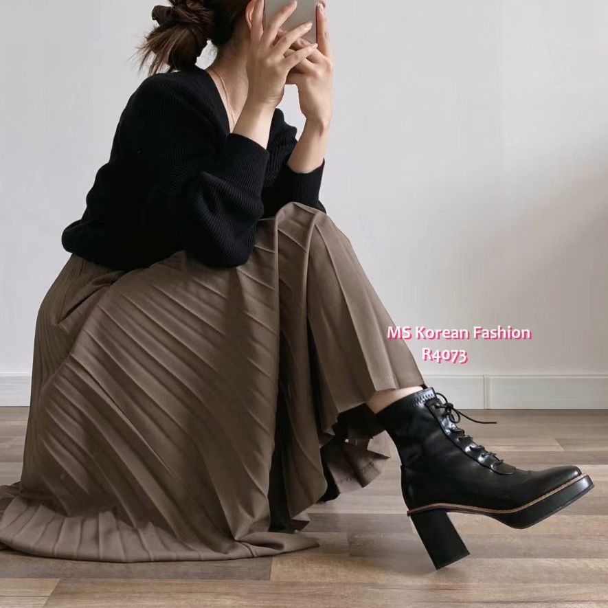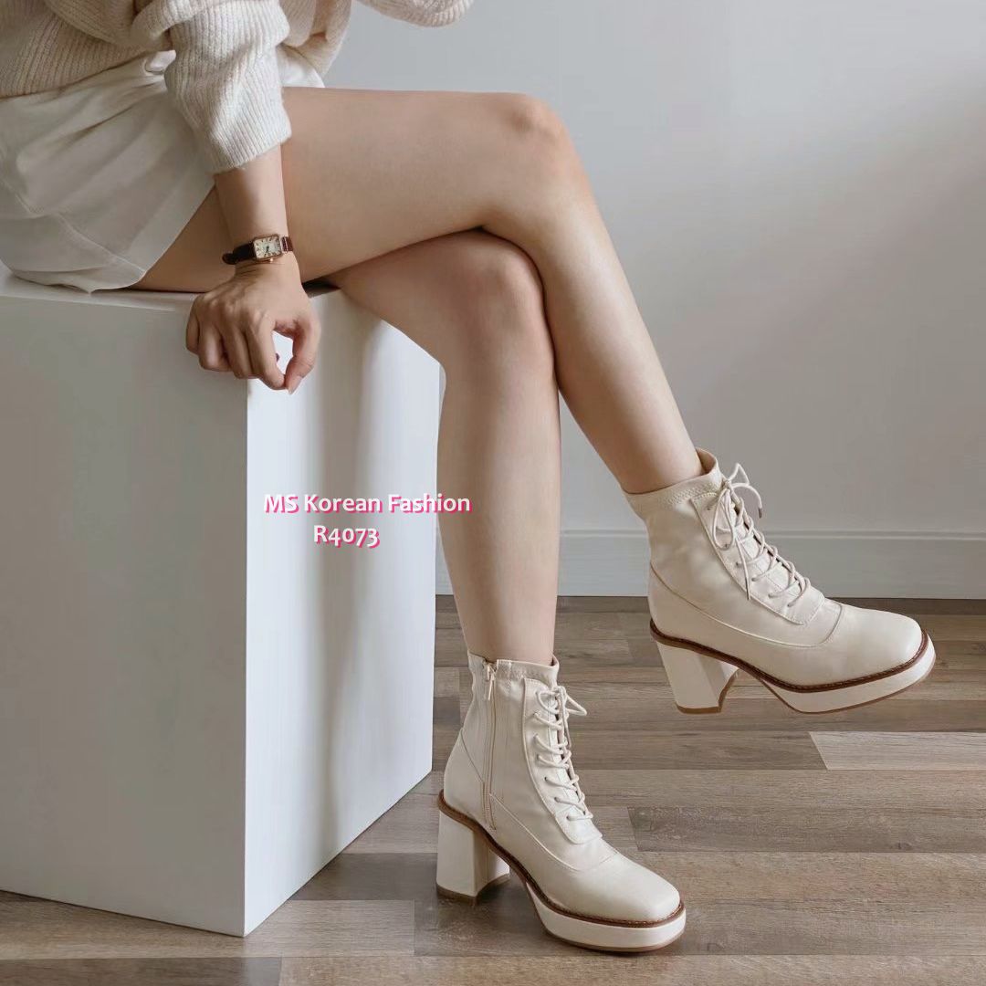 R4073 韓國🇰🇷方頭綁帶高跟Boot