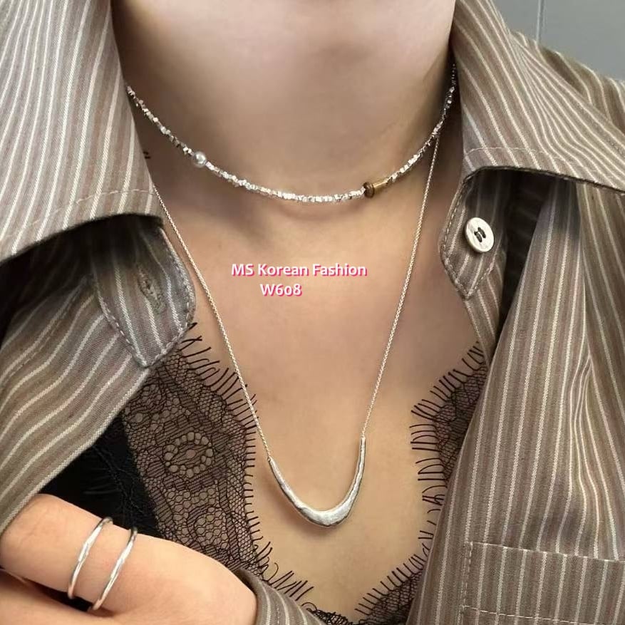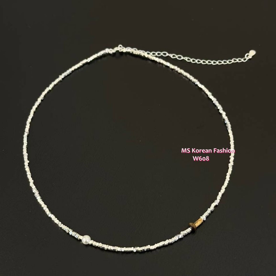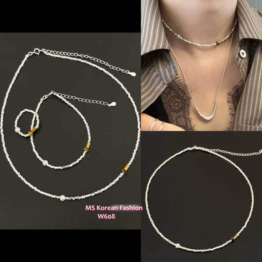 W608 韓國🇰🇷S925碎銀珍珠拼接彈力繩頸鏈