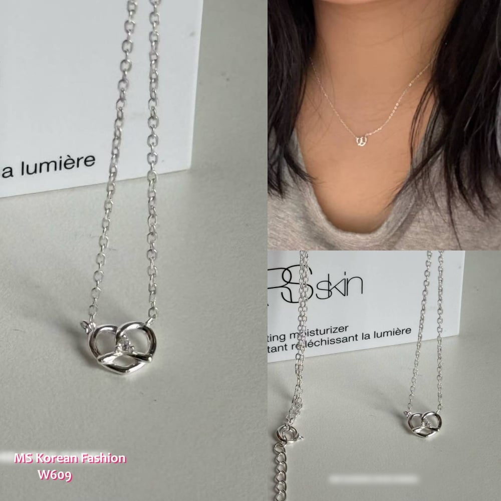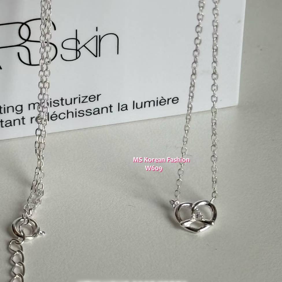 W609 韓國🇰🇷S925純銀愛心扭結頸鏈