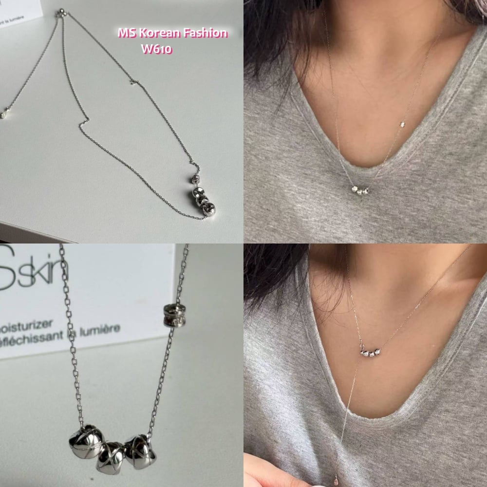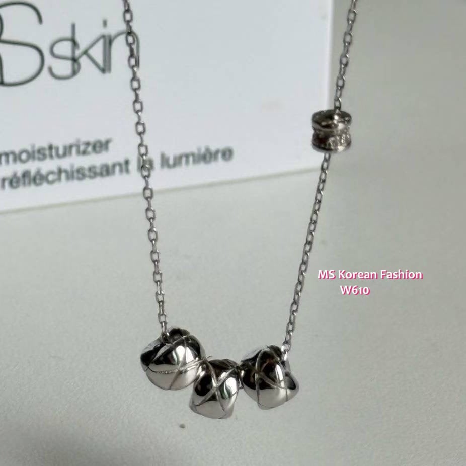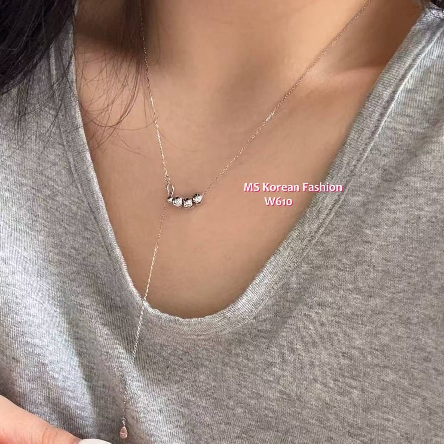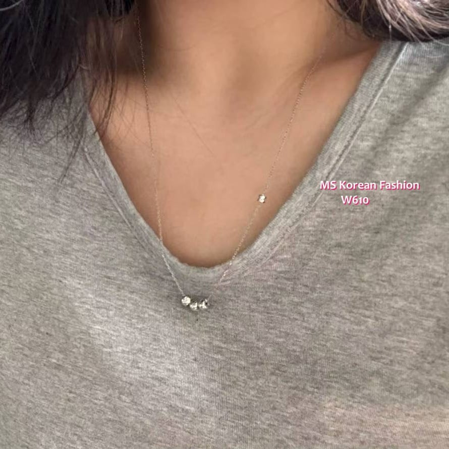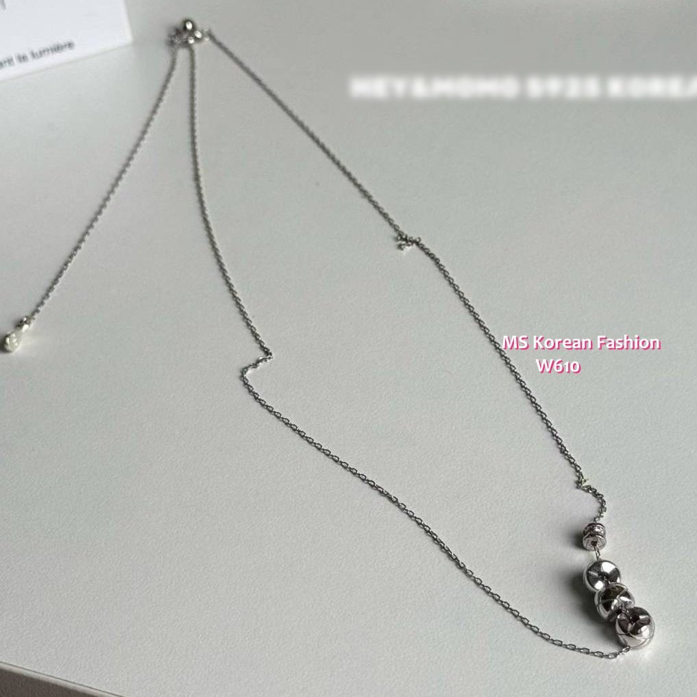 W610 韓國🇰🇷S925純銀菱格3環吊墜可抽拉頸鏈