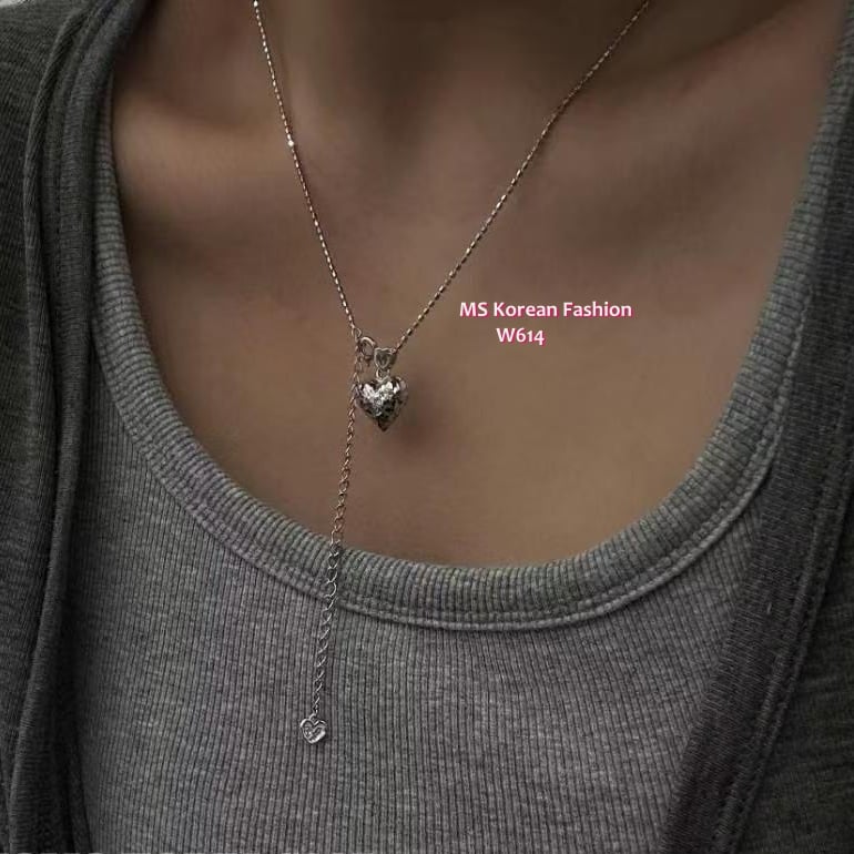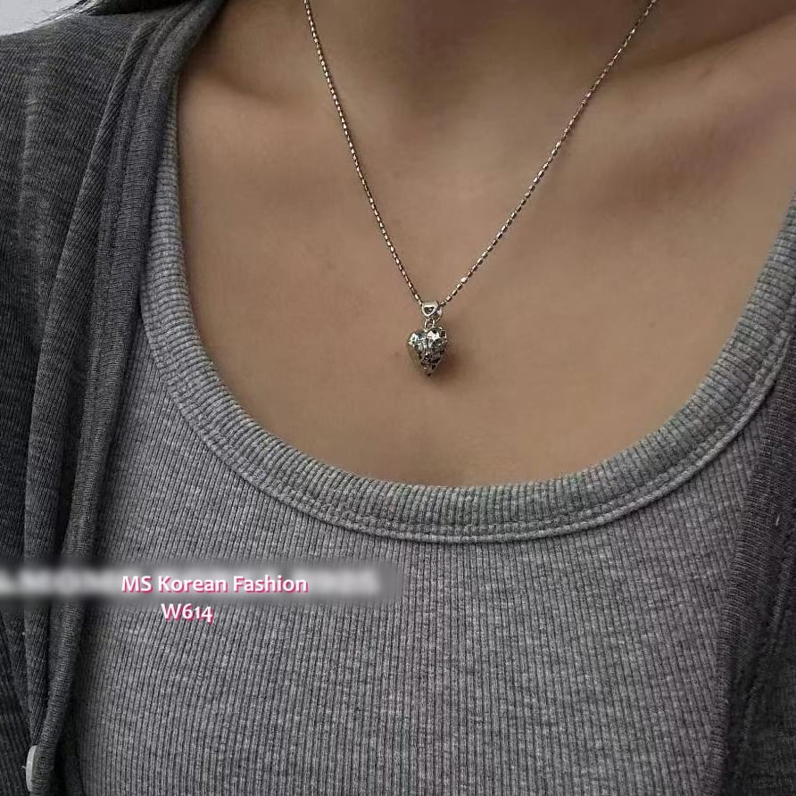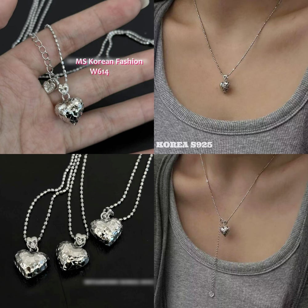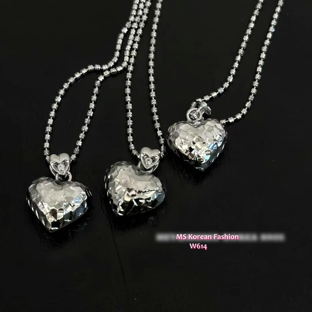 W614 韓國🇰🇷S925純銀碎冰切割銀愛心頸鏈