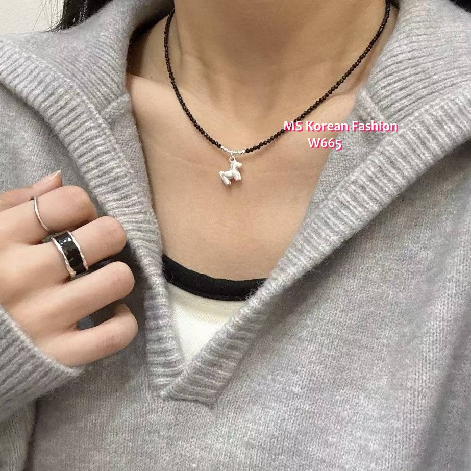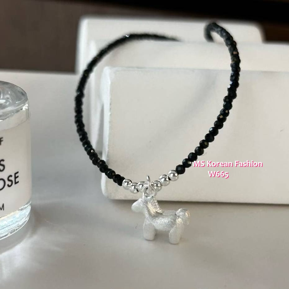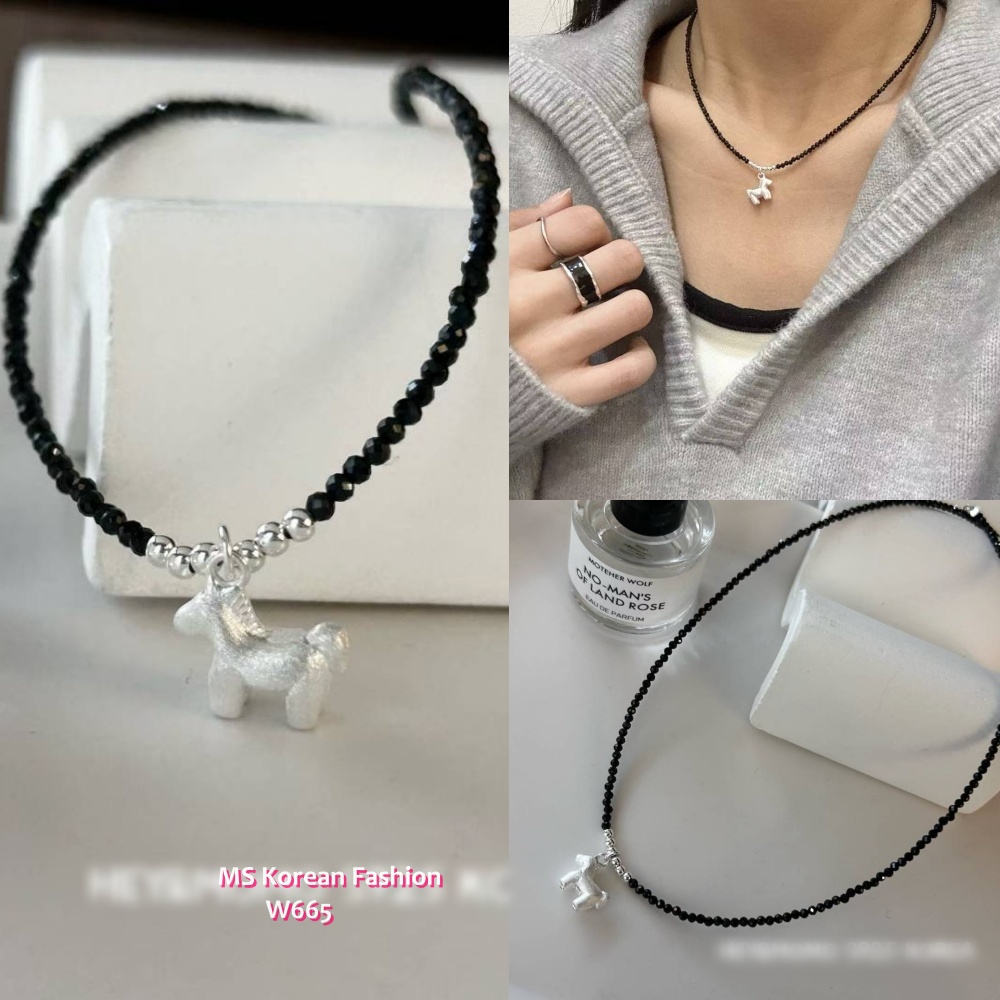 W665 韓國🇰🇷S925磨砂小馬黑晶石頸鏈