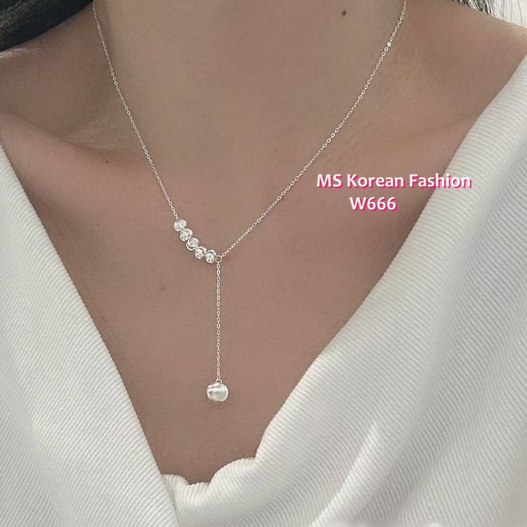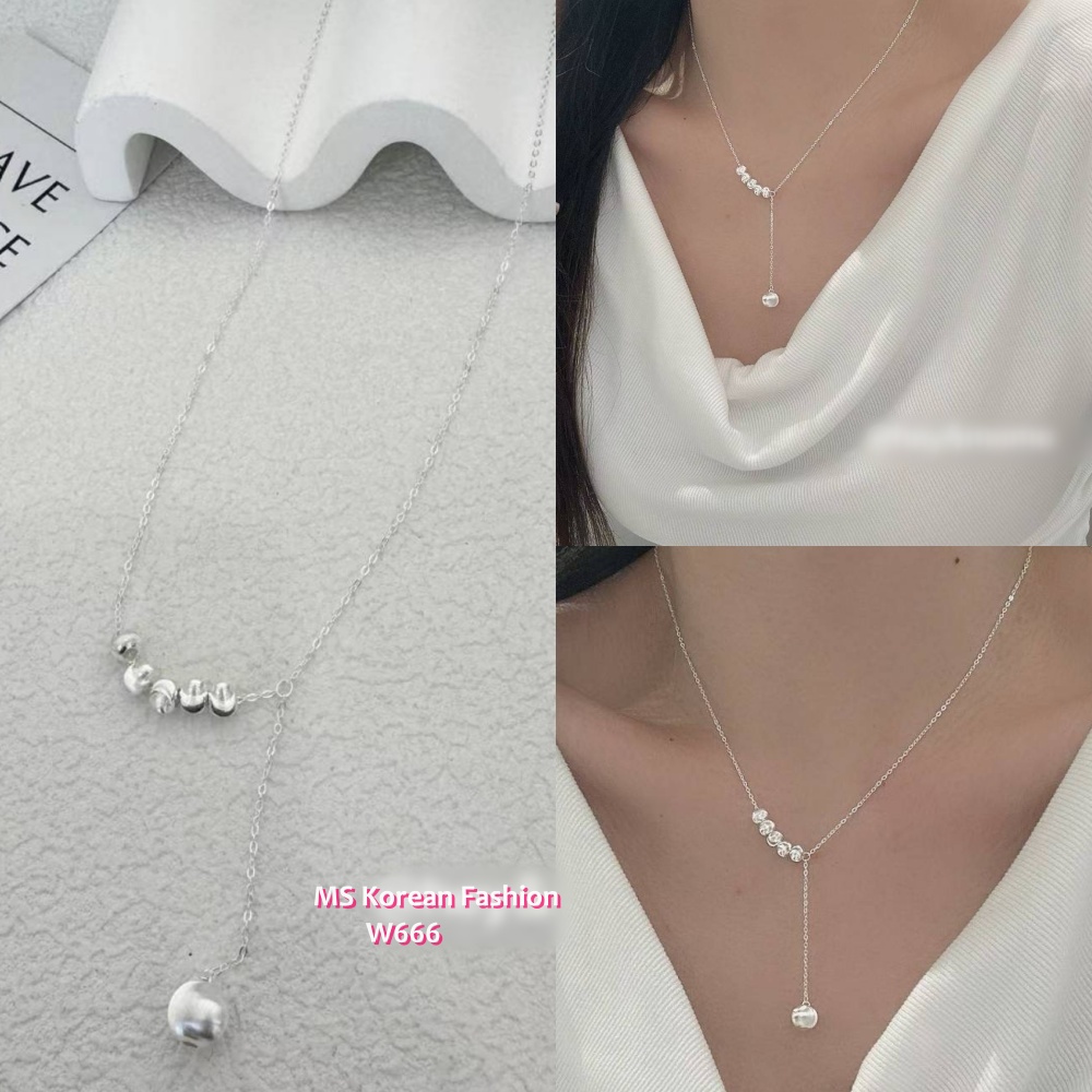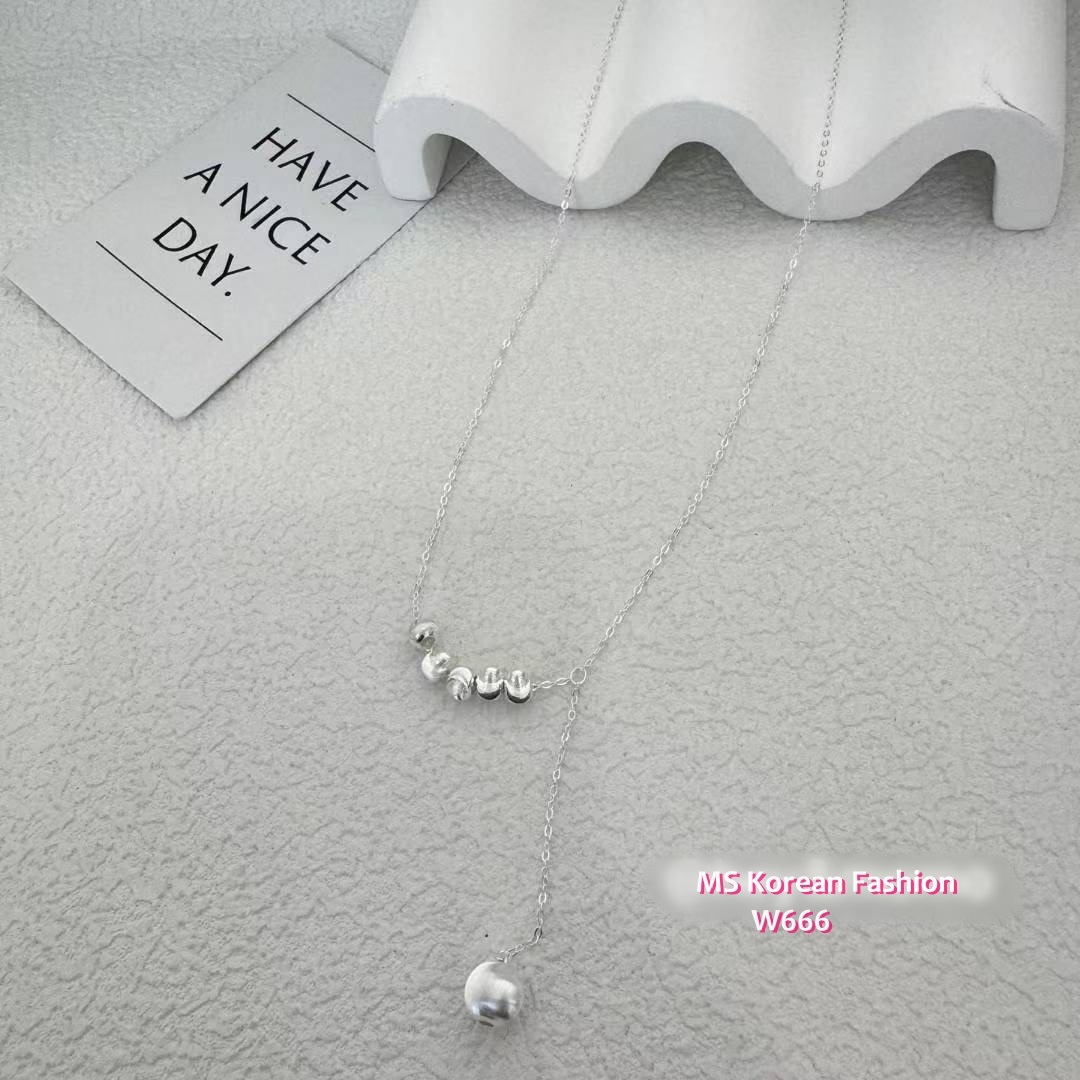 W666 韓國🇰🇷S925拉絲銀球Y字頸鏈
