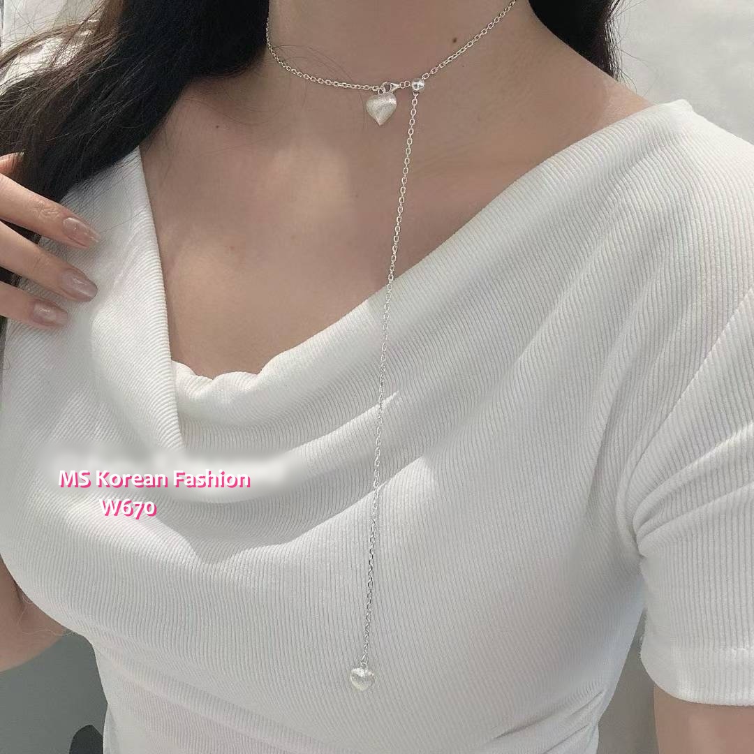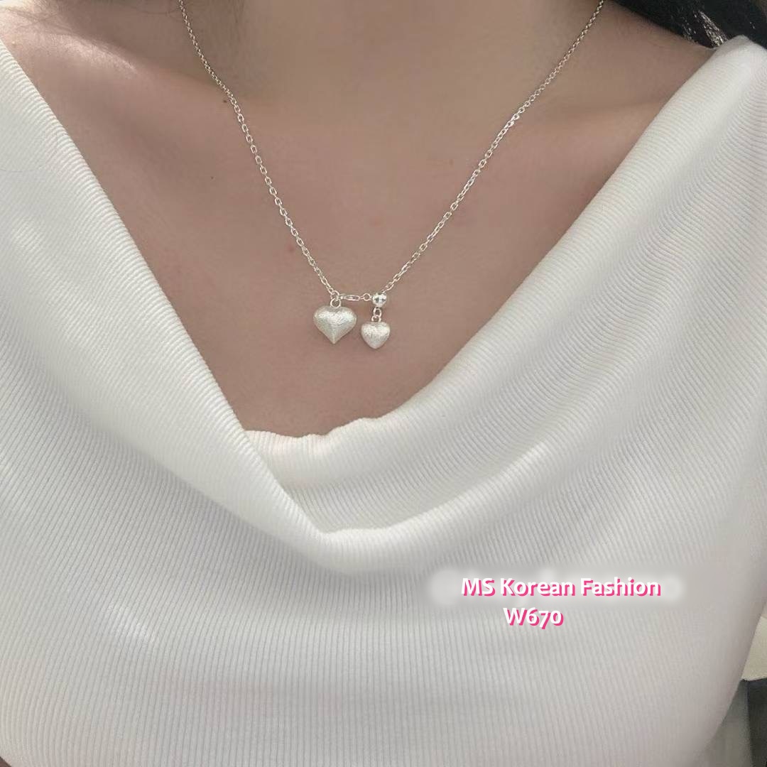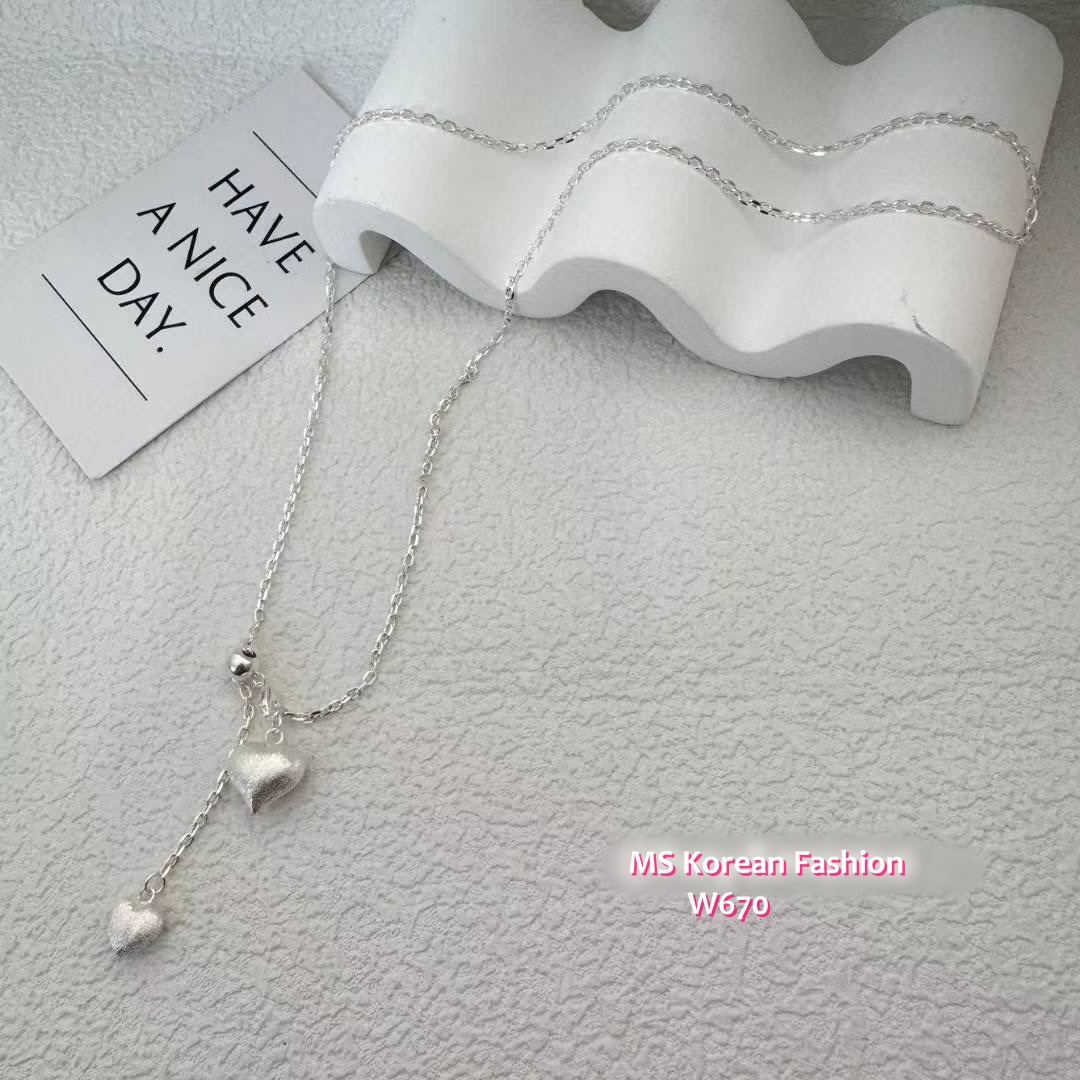 W670 韓國🇰🇷S925亮白銀磨砂Y字愛心抽拉頸鏈