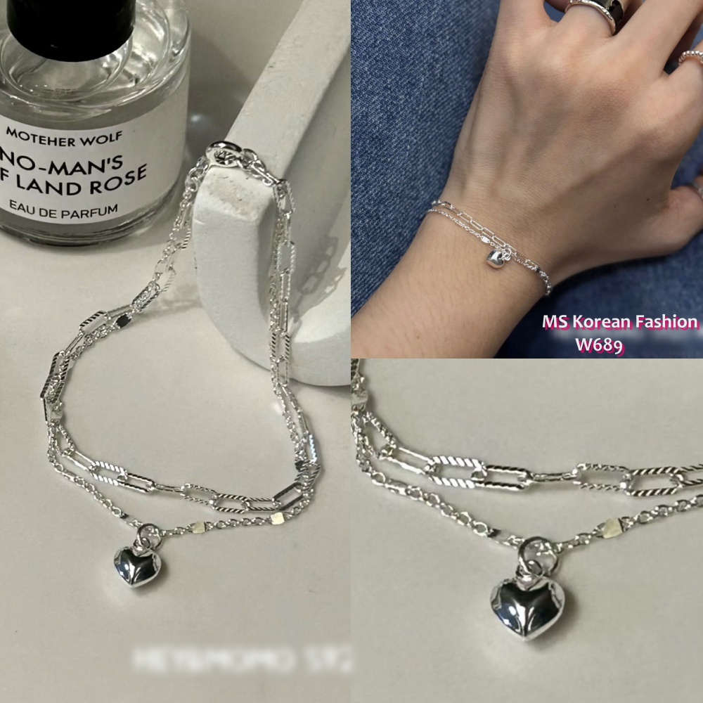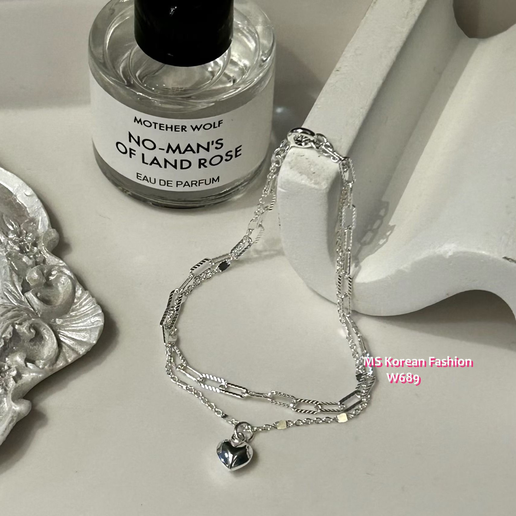 W689 韓國🇰🇷S925雙層鎖扣鏈條拼接愛心手鏈