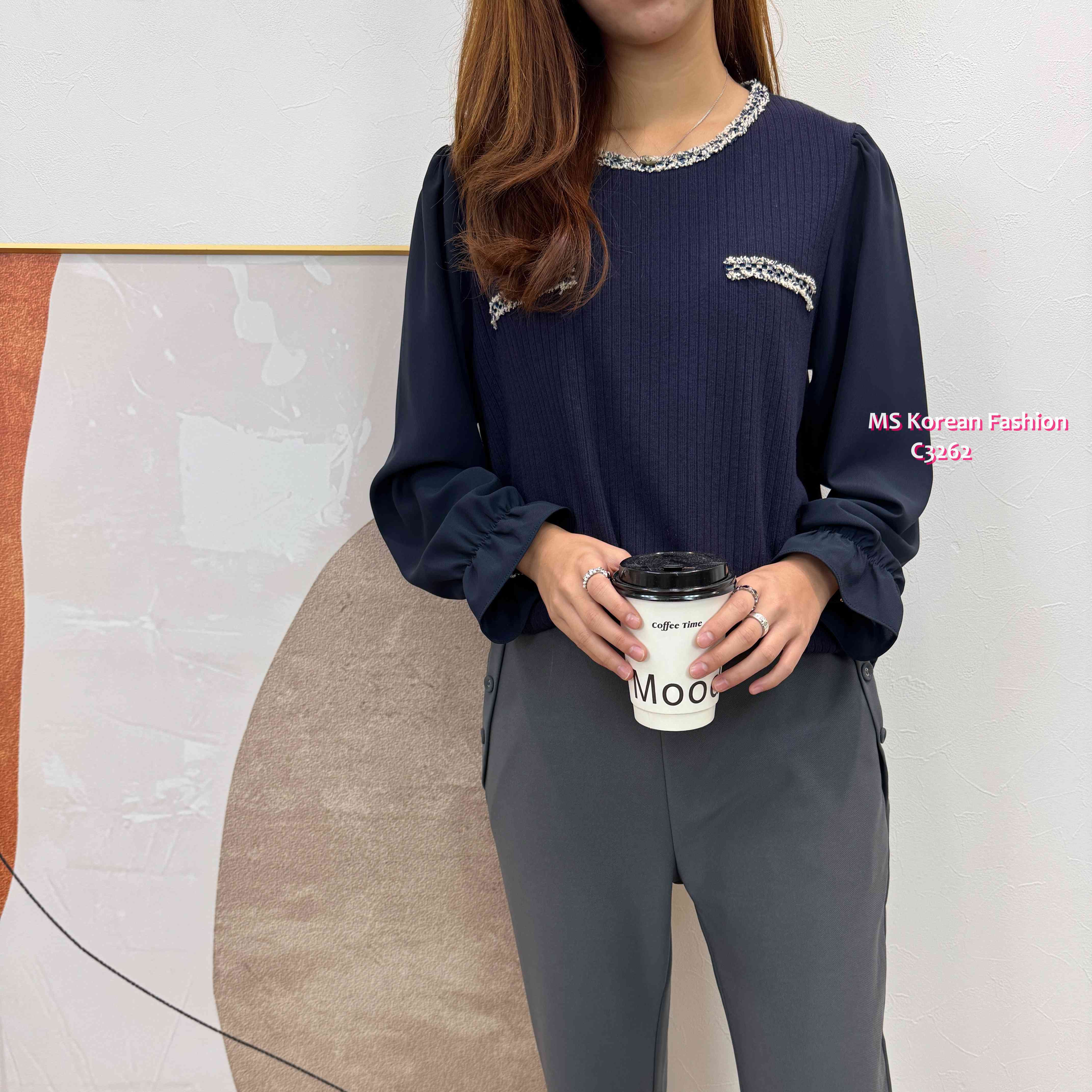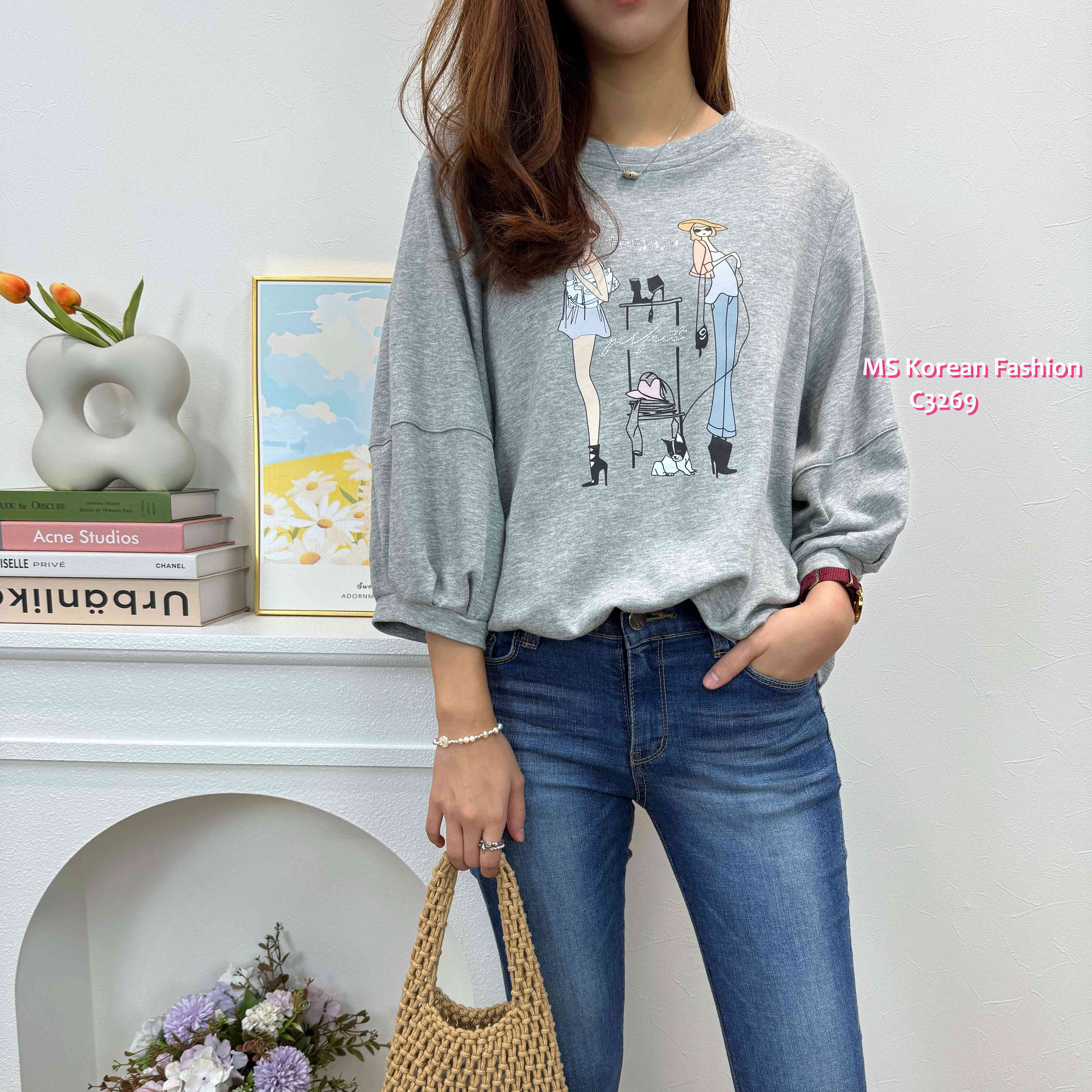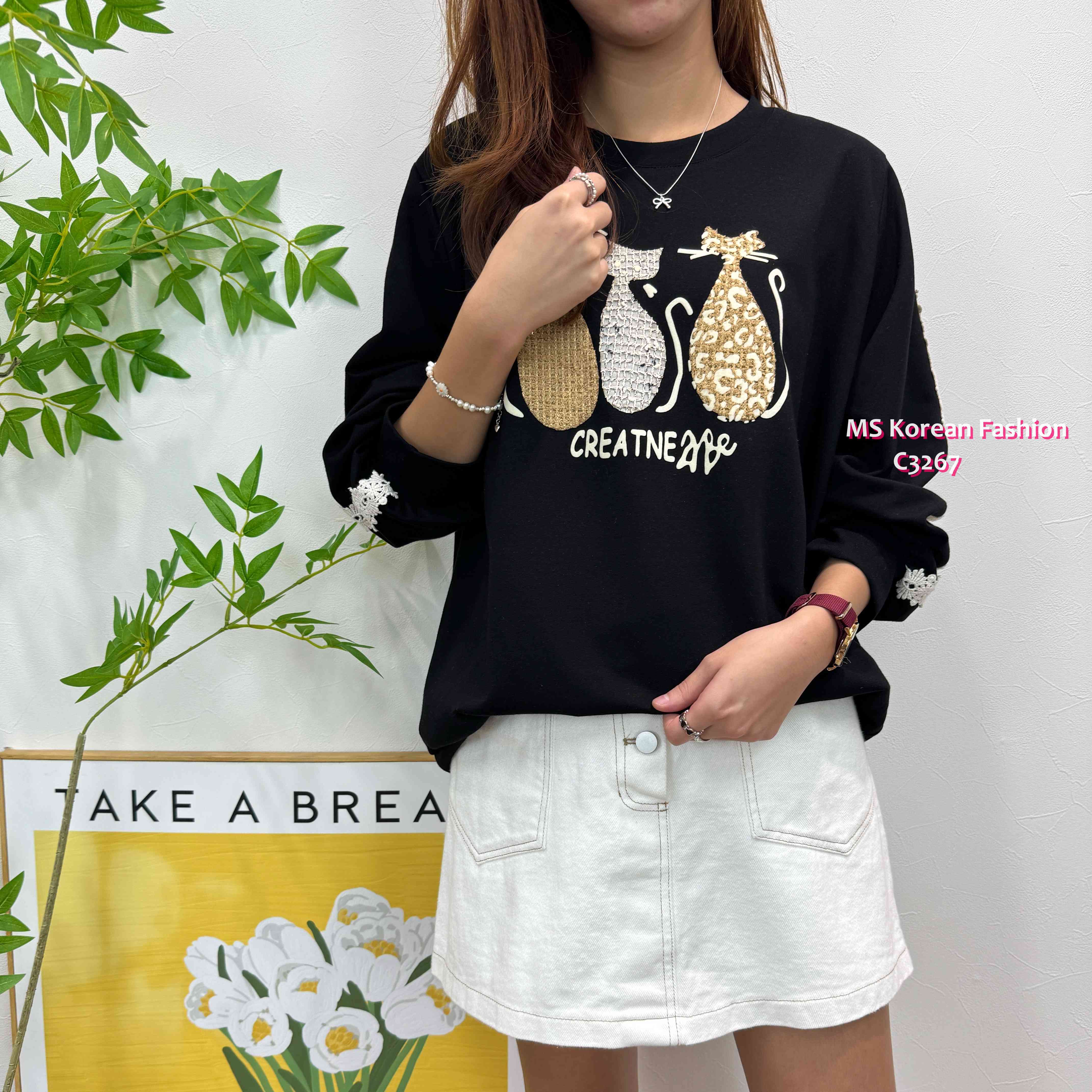 C3267 韓國🇰🇷可愛貓咪花邊袖top